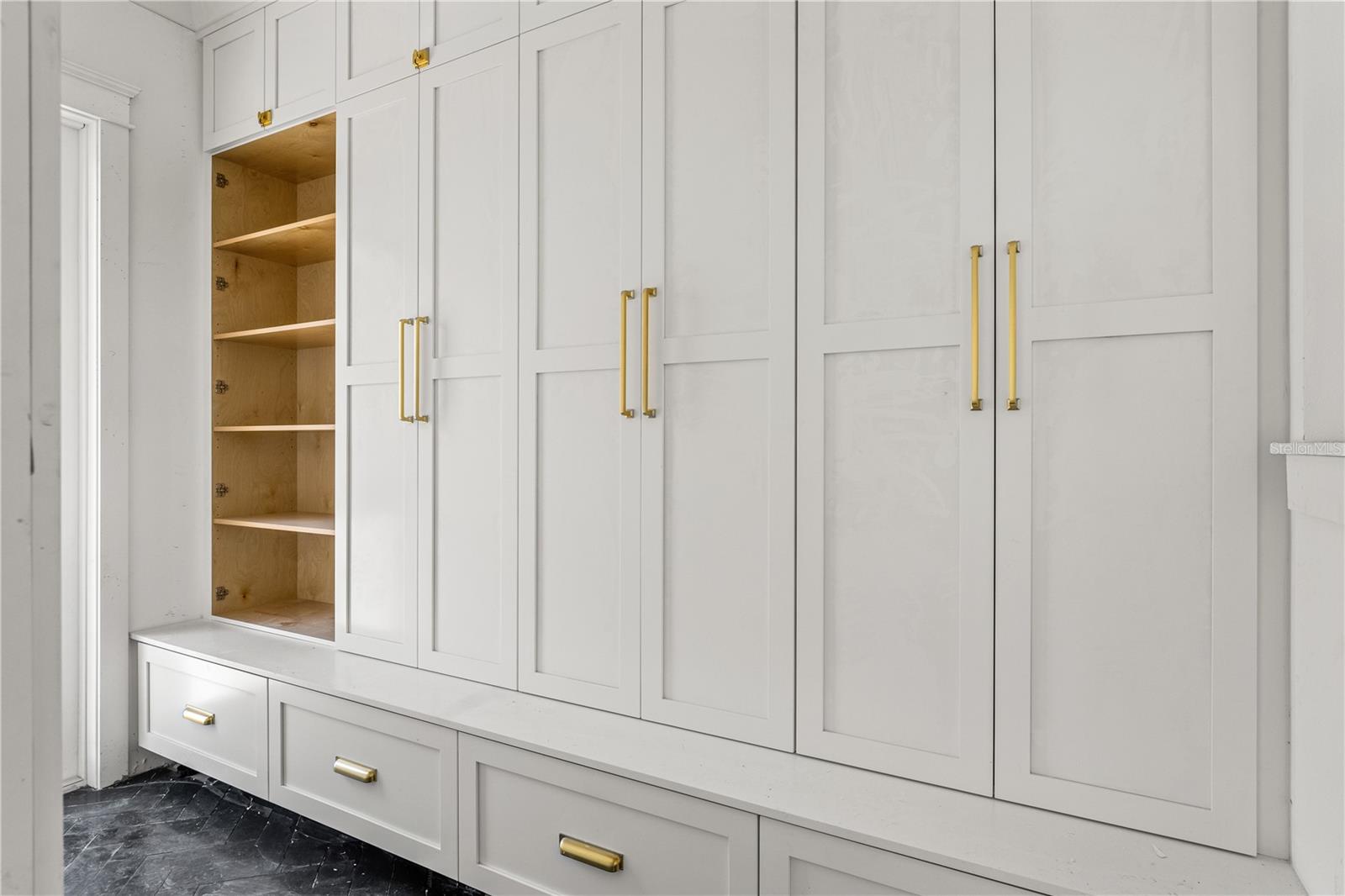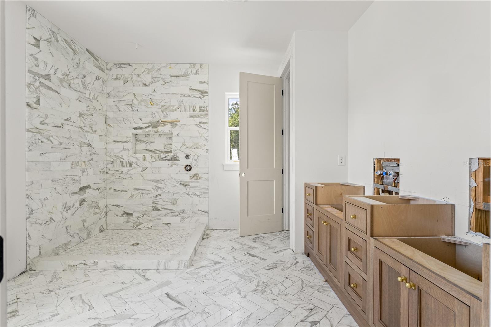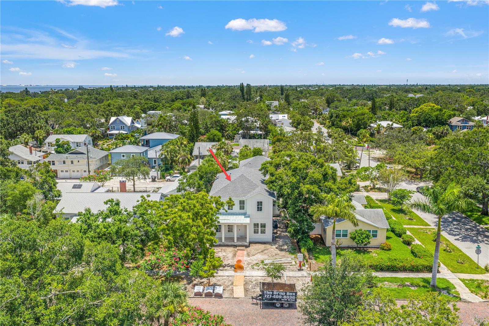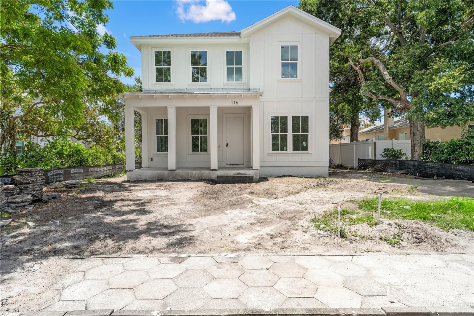 Under Construction. Estimated completion: August 2025. Don't miss the chance to make this your dream home with Canopy Builders--St. Petersburg's most TRUSTED name in luxury home construction. Located in the charming Old Southeast neighborhood and in a NON-FLOOD ZONE, This Modern Farmhouse model features five bedrooms + loft, three bathrooms, a detached two-car garage, and a full one-bedroom, one-bathroom Accessory Dwelling Unit (ADU) with a walk-in closet, full kitchen, and laundry closet. The main home offers 2,845 sqft of living space, with an additional 589 sqft in the ADU (totaling 3,434 sqft). Step inside to a welcoming foyer, highlighted by a stunning gold pendant and white T&G walls. The home's flexible layout adapts to your lifestyle--the study and guest bedroom near the foyer can serve as a private office, guest suite, or hobby room. The nearby powder bath features a white and gold washstand, textured wallpaper, and coordinating shower floor and wall tile. The open-concept kitchen, great room, and dining room make entertaining effortless. The chef's kitchen is a showstopper, with soapstone countertops and slab backsplash, a white oak island topped with marble, stainless steel appliances, and premium lighting and plumbing fixtures. The dining room is bathed in natural light, creating a warm ambiance, while the adjacent mudroom offers ample storage with thoughtful design details. Upstairs, the loft provides an extra space to unwind. To the right are two bedrooms, while the primary suite sits on the left for added privacy. The primary suite boasts two large walk-in closets and a spa-like bath with a white oak double vanity, marble countertops, a walk-in shower, and a soaking tub--all complemented by stunning finishes and sconces. The second bath, shared by the guest bedrooms, includes a walk-in shower and bathtub, with white oak cabinets, soapstone counters, and unique floor tiles that make a statement. The upstairs laundry room adds convenience with a dedicated sink and ample storage, featuring unique colors and tile. Every detail of this home has been meticulously designed, featuring a pre-selected finish package, Hardie Board plank siding, a tankless gas water heater, impact-resistant windows, engineered hardwood flooring throughout, and dual digital thermostats for climate control on both levels. Other luxury touches include 10' ceilings on the main level, 9' ceilings upstairs, 8' interior doors, and elegant gas sconces on the front porch. The spacious backyard is a blank canvas for your dream outdoor oasis--whether you envision a sparkling pool or a tranquil retreat. Located just steps from Lassing Park and Harborage Marina (Freedom Boat Club), a golf cart ride from Downtown St. Petersburg, minutes to award-winning beaches, Vinoy Park, and just 30 minutes from Tampa, this is a rare opportunity to secure a breathtaking new home. *****CONSTRUCTION UPDATE JUNE 8th 2025: Exterior: Doors, Windows, Garage Doors installed. Interior: Drywall, interior doors installed, Kitchen Cabinets installed, Bathroom tile installed, A/C installed.