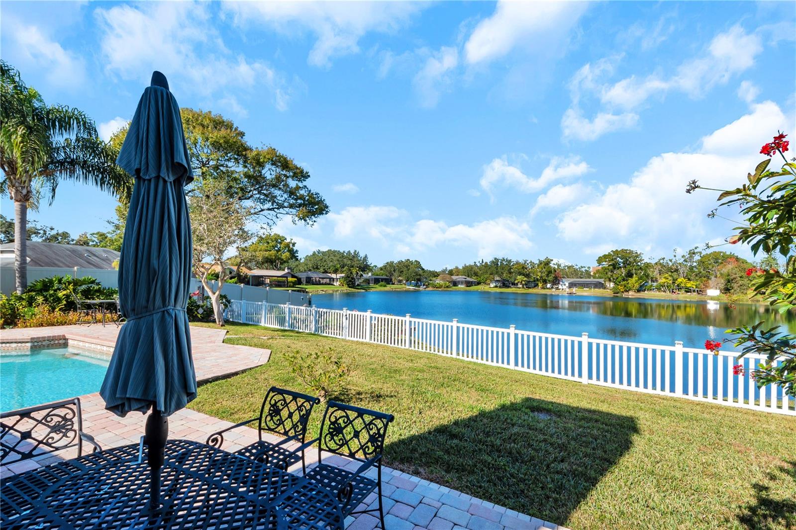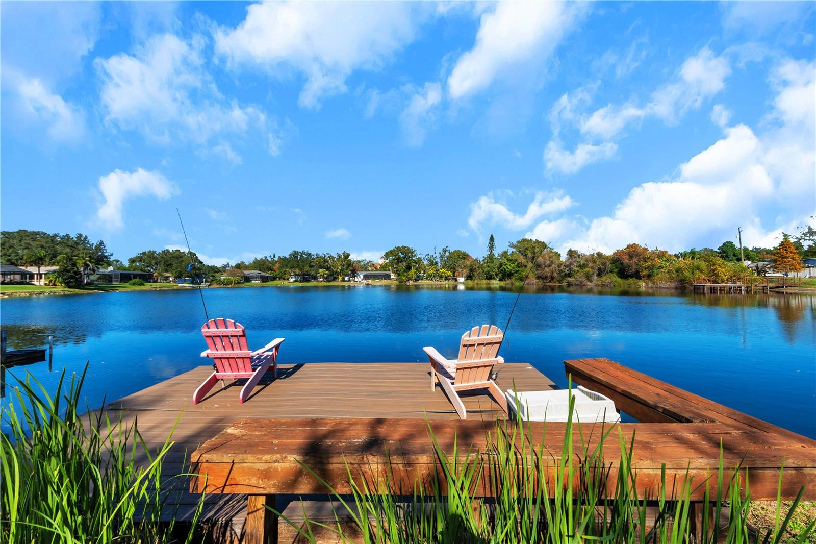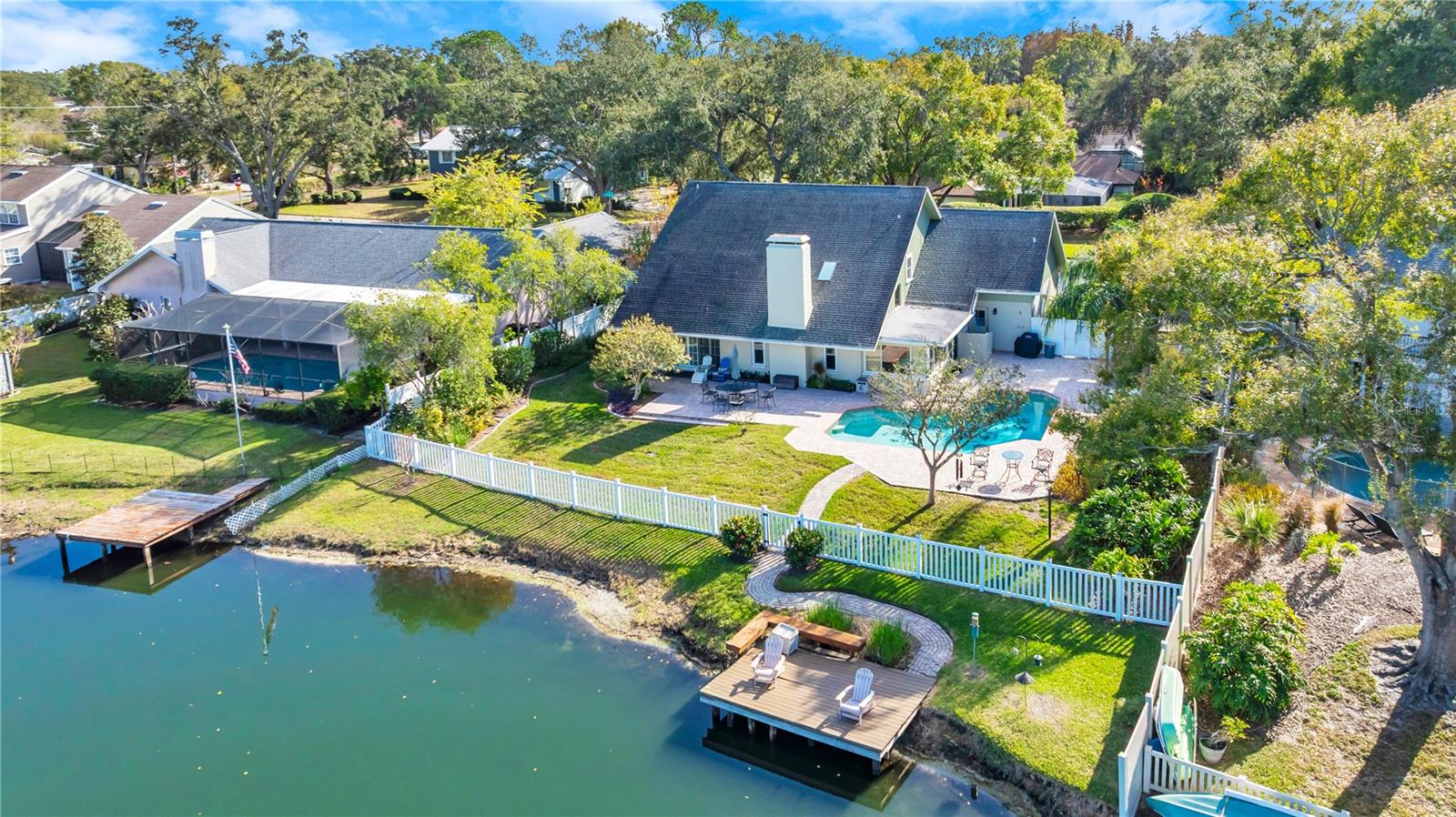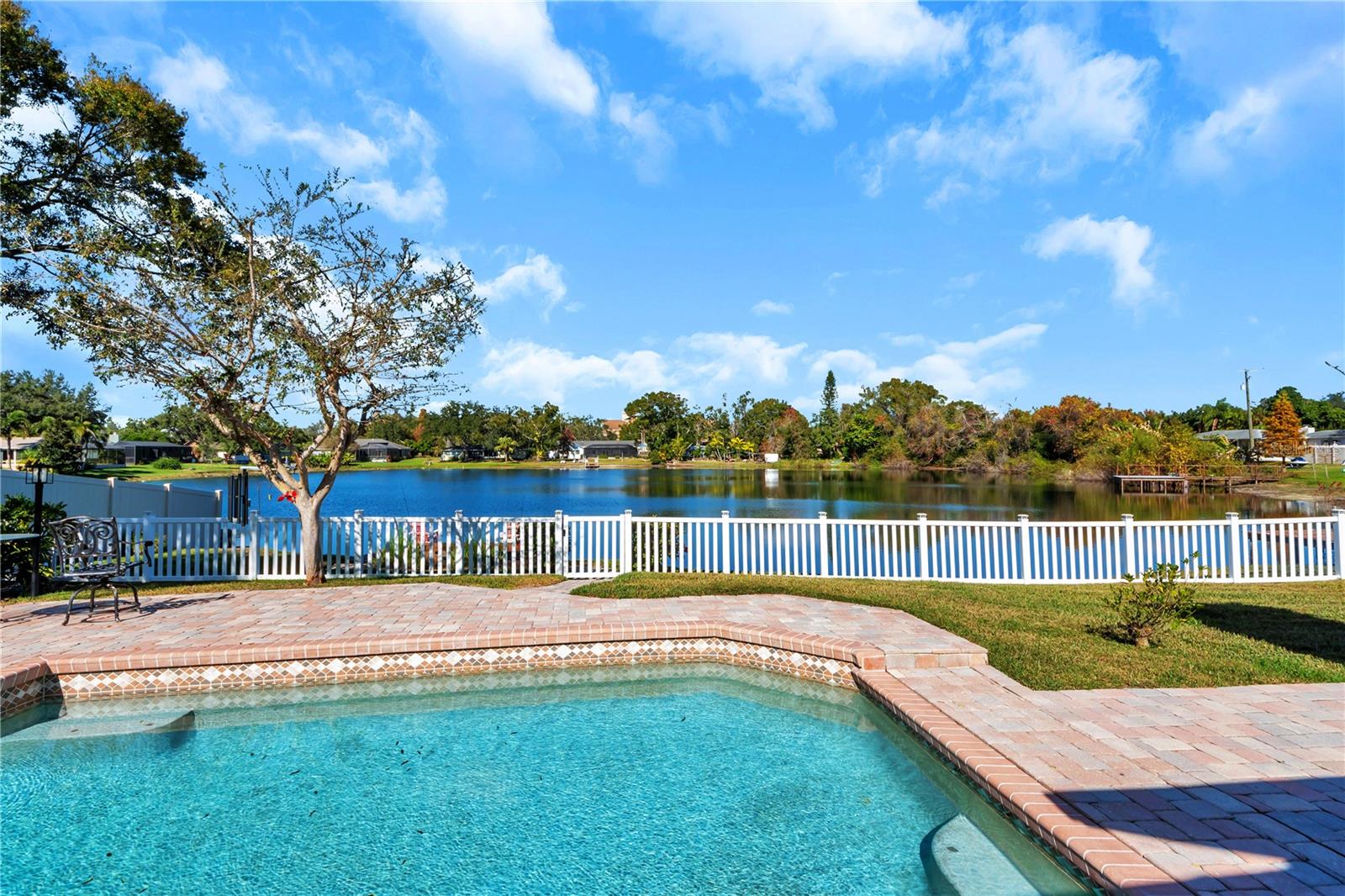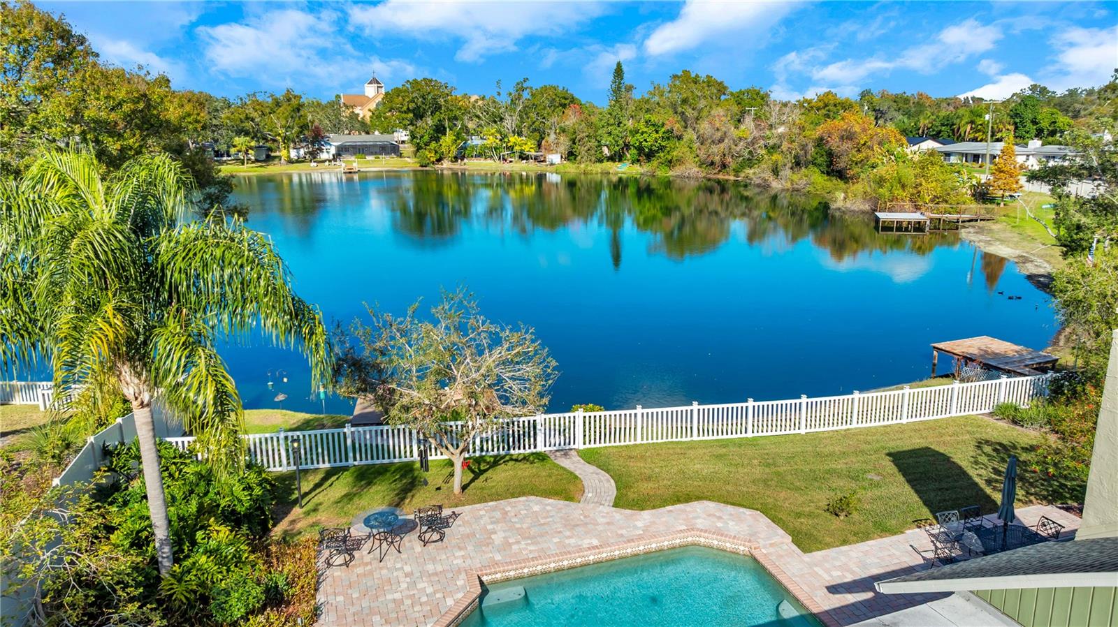 A rare Lake Stall residence offering 100 feet of natural, spring-fed waterfrontage, situated on a 16,200 sq ft homestead a quiet, tree-lined Carrollwood cul-de-sac of just 20 homes. Lake Stall is a true freshwater lake, interconnected with Lake Ellen and known for excellent bass fishing, making this a setting that is increasingly difficult to find in Carrollwood. Immaculate landscaping, standout curb appeal, and a massive paved pool deck immediately reflect the pride of ownership throughout. This spacious 4-bedroom, 2.5-bath home offers over 2,900 sq ft of living space thoughtfully designed with timeless finishes. Inside, vaulted ceilings and extensive hard oak flooring create a warm, custom feel rarely seen today. The flexible floorplan includes a first-floor primary suite with a large walk-in closet, while three upstairs guest bedrooms provide generous space and storage, including one ideal for a craft or playroom. A flex space off the kitchen works beautifully as an eat-in area, hobby space, or office-style workspace, while the large formal living room, currently set up as a billiards room, offers an additional expansive gathering area without compromising functionality. A half bathroom, laundry room, and 2-car garage complete the main level. The kitchen features granite countertops, stainless steel appliances, a built-in wine rack, coffee bar, and a layout that connects seamlessly to the main living areas. Plantation shutters, a fireplace, and a Florida room with tranquil water views further enhance the home's inviting character. Recent updates include a new roof (2019 with transferable warranty), new HVAC systems (2021), hardwood flooring, new range (2025), updated windows with impact-rated standards at the time of installation, new fencing, updated water heater, plantation shutters, and custom kitchen and bathroom renovations completed during current ownership. Outdoors is where this property truly distinguishes itself. The oversized, fully fenced backyard features lush, manicured landscaping, a massive paved pool deck, large pergola, dock, storage shed, and sweeping views across the spring-fed lake. With direct access to an interconnected lake system, the setting offers both peaceful scenery and recreational enjoyment (including incredible bass fishing), creating a private, natural waterfront experience rarely available in this area. All of this is complemented by a central Carrollwood location offering exceptional convenience to everyday essentials, dining, parks, and cultural venues. N. Dale Mabry Hwy (approx. 1 mile), Carrollwood Village Park, Carrollwood Cultural Center, and Carrollwood Country Club are all within 3 miles, with USF approximately 5 miles away and both Tampa International Airport and Downtown Tampa reachable in about 20 minutes. Quick access to I-275 provides seamless connectivity across Tampa Bay. Homes offering true lake front and this level of outdoor space rarely come available in this Carrollwood enclave. schedule your showing and experience the lifestyle this Lake Stall property delivers.