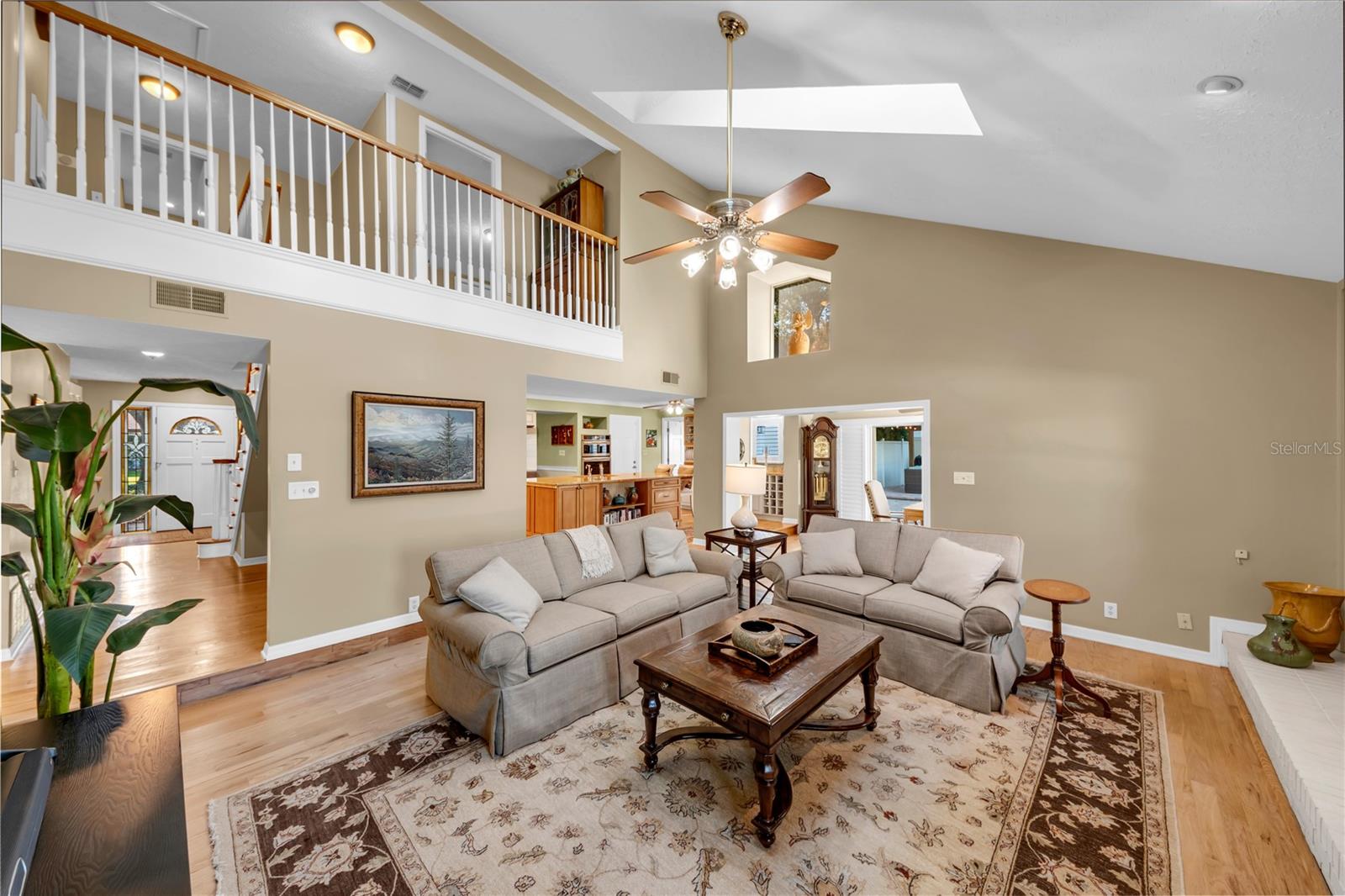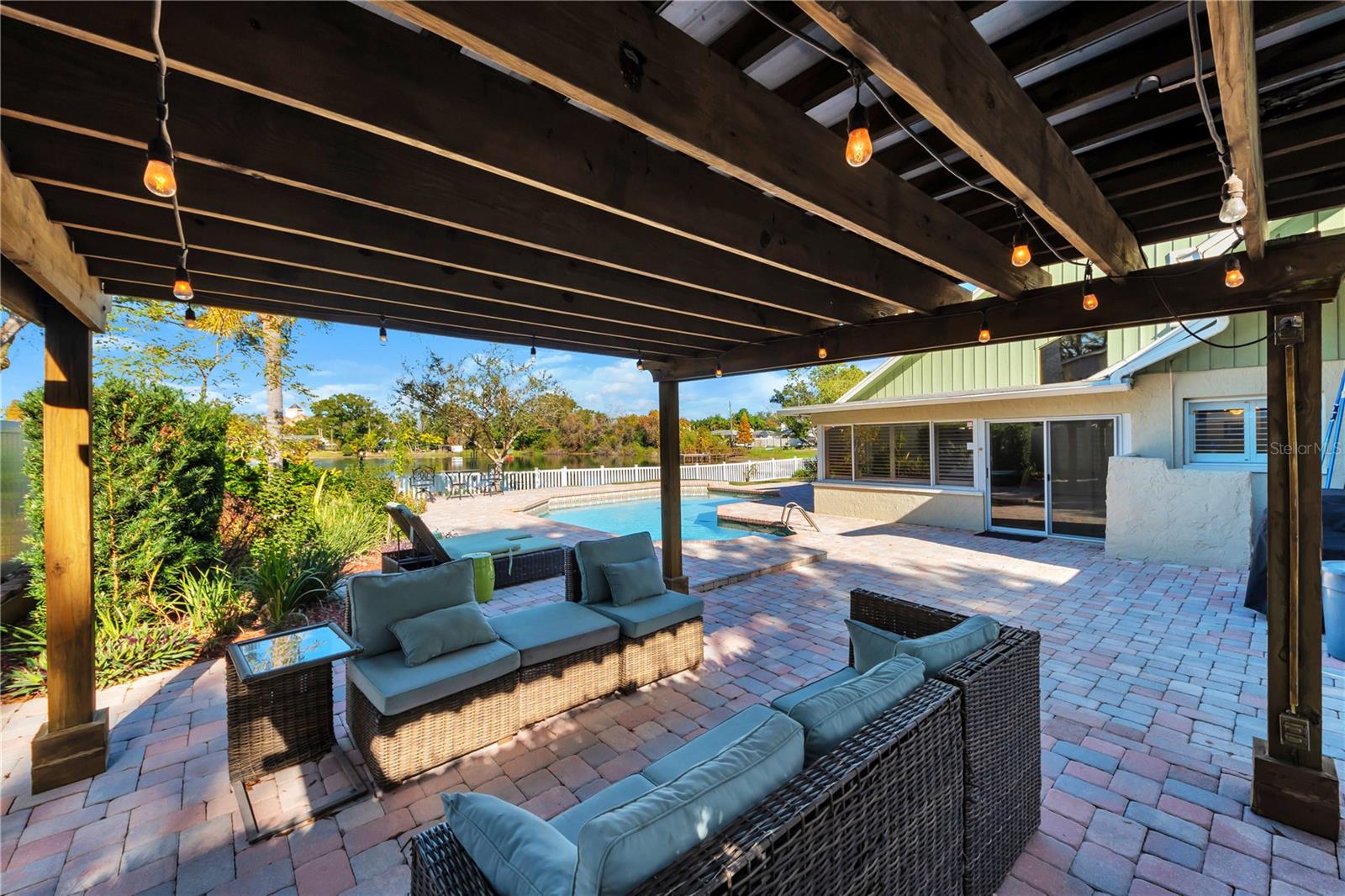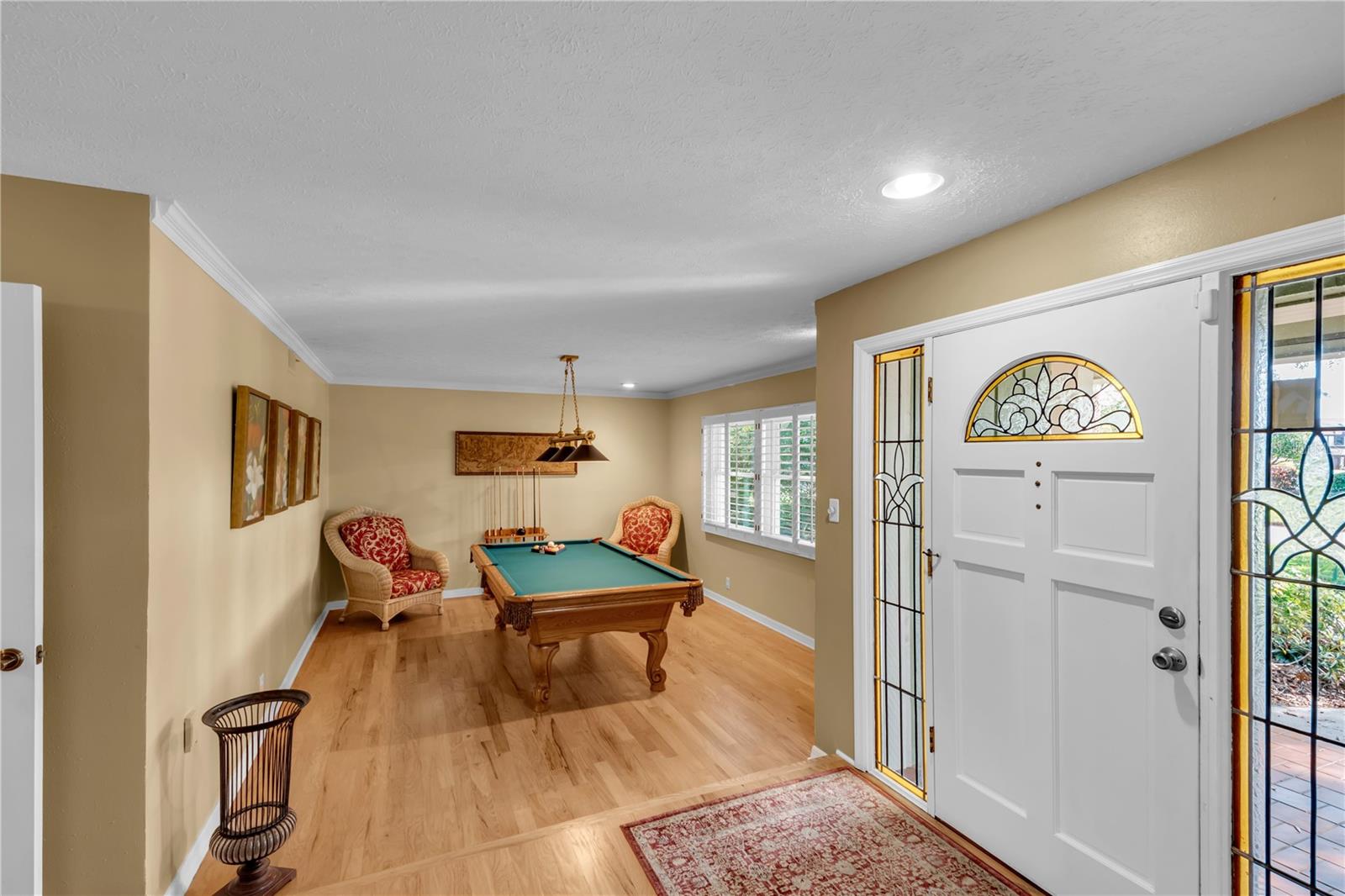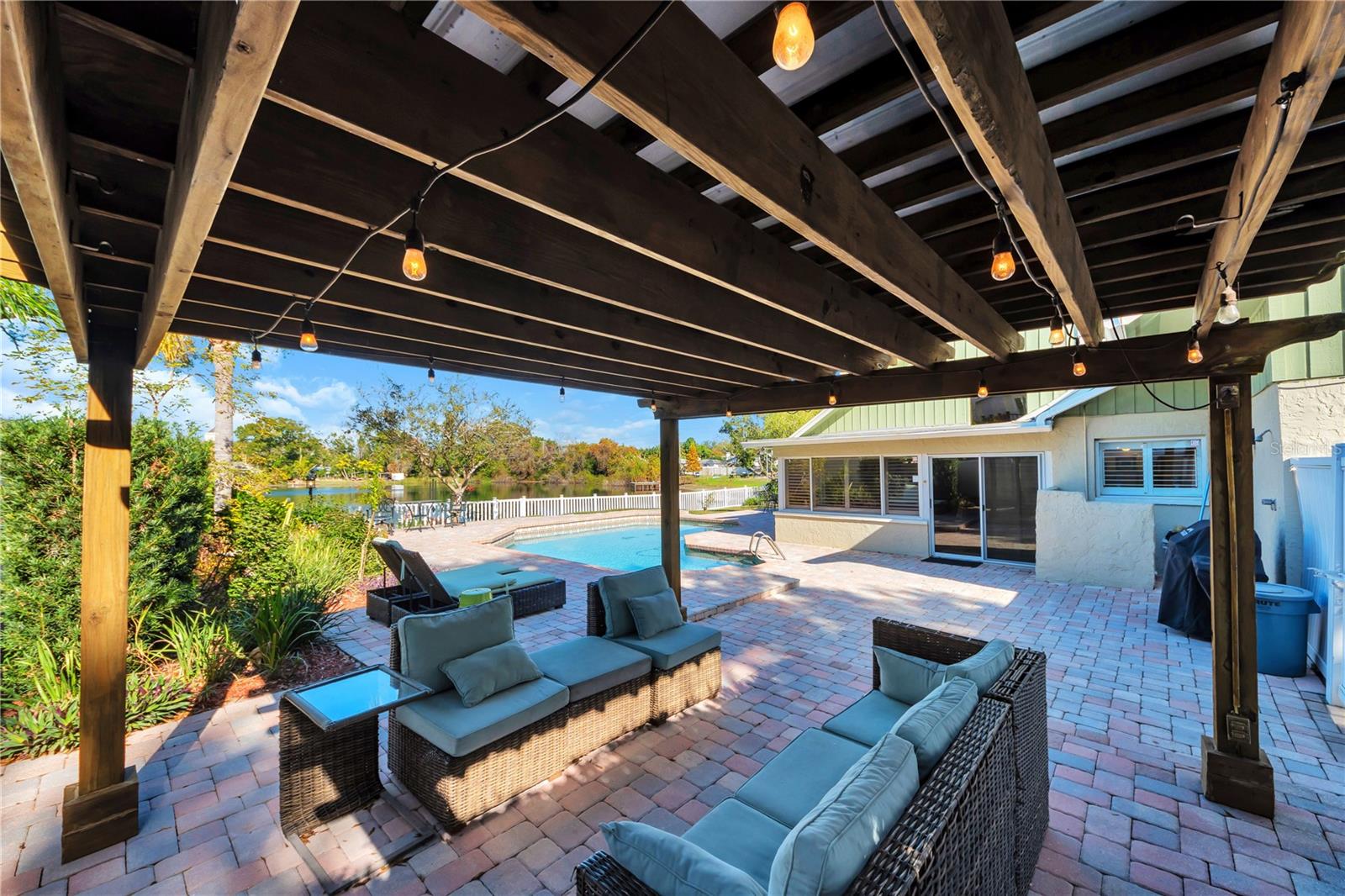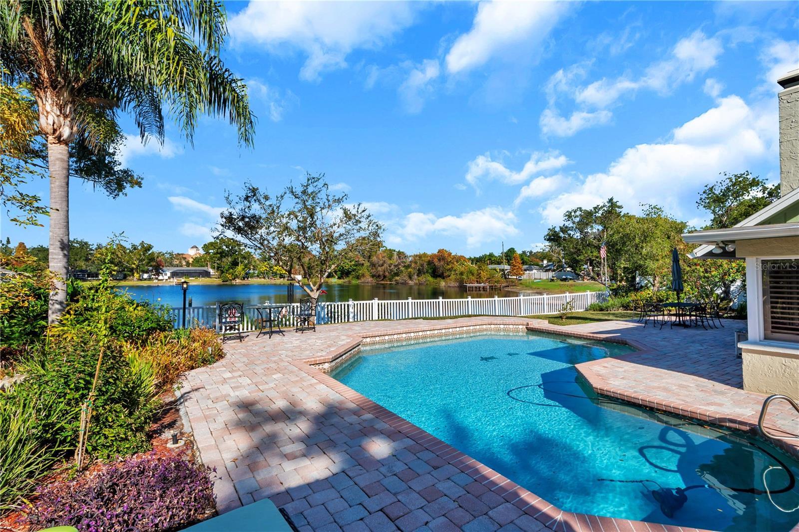 A rare Lake Stall residence offering 100 feet of natural, spring-fed waterfrontage, situated on a 16,200 sq ft homestead a quiet, tree-lined Carrollwood cul-de-sac of just 20 homes. Lake Stall is a true freshwater lake, interconnected with Lake Ellen and known for excellent bass fishing, making this a setting that is increasingly difficult to find in Carrollwood. Immaculate landscaping, standout curb appeal, and a massive paved pool deck immediately reflect the pride of ownership throughout. This spacious 4-bedroom, 2.5-bath home offers over 2,900 sq ft of living space thoughtfully designed with timeless finishes. Inside, vaulted ceilings and extensive hard oak flooring create a warm, custom feel rarely seen today. The flexible floorplan includes a first-floor primary suite with a large walk-in closet, while three upstairs guest bedrooms provide generous space and storage, including one ideal for a craft or playroom. A flex space off the kitchen works beautifully as an eat-in area, hobby space, or office-style workspace, while the large formal living room, currently set up as a billiards room, offers an additional expansive gathering area without compromising functionality. A half bathroom, laundry room, and 2-car garage complete the main level. The kitchen features granite countertops, stainless steel appliances, a built-in wine rack, coffee bar, and a layout that connects seamlessly to the main living areas. Plantation shutters, a fireplace, and a Florida room with tranquil water views further enhance the home's inviting character. Recent updates include a new roof (2019 with transferable warranty), new HVAC systems (2021), hardwood flooring, new range (2025), updated windows with impact-rated standards at the time of installation, new fencing, updated water heater, plantation shutters, and custom kitchen and bathroom renovations completed during current ownership. Outdoors is where this property truly distinguishes itself. The oversized, fully fenced backyard features lush, manicured landscaping, a massive paved pool deck, large pergola, dock, storage shed, and sweeping views across the spring-fed lake. With direct access to an interconnected lake system, the setting offers both peaceful scenery and recreational enjoyment (including incredible bass fishing), creating a private, natural waterfront experience rarely available in this area. All of this is complemented by a central Carrollwood location offering exceptional convenience to everyday essentials, dining, parks, and cultural venues. N. Dale Mabry Hwy (approx. 1 mile), Carrollwood Village Park, Carrollwood Cultural Center, and Carrollwood Country Club are all within 3 miles, with USF approximately 5 miles away and both Tampa International Airport and Downtown Tampa reachable in about 20 minutes. Quick access to I-275 provides seamless connectivity across Tampa Bay. Homes offering true lake front and this level of outdoor space rarely come available in this Carrollwood enclave. schedule your showing and experience the lifestyle this Lake Stall property delivers.