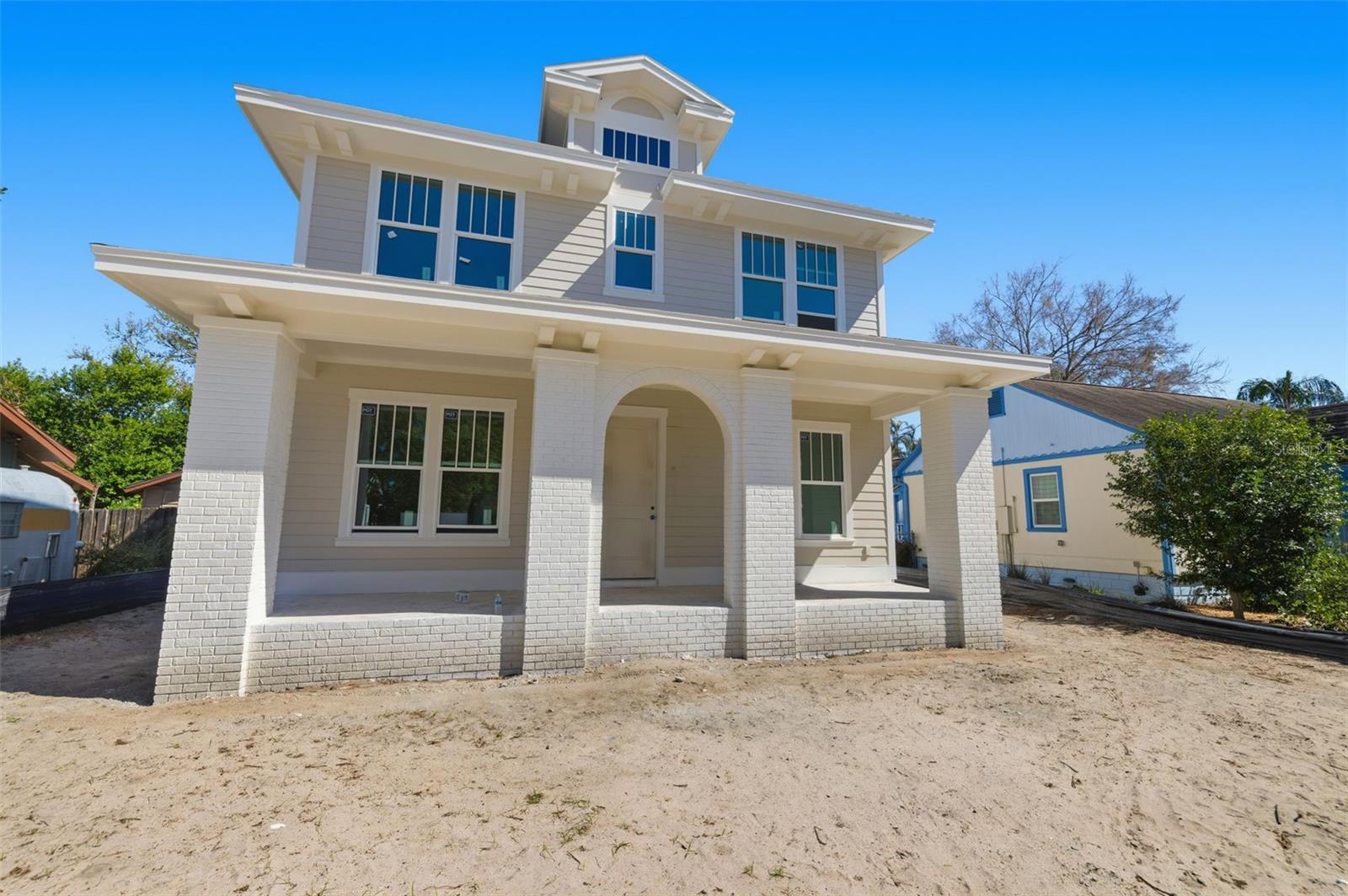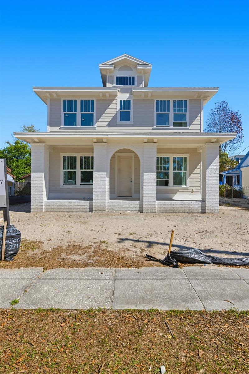 Under Construction. Under Construction. Introducing 2011 10th St N, now under construction in Euclid St. Paul, one of St. Pete's most desirable neighborhoods on a rare, oversized 58' x 150' lot. The Piedmont by Canopy Builders blends traditional architecture with signature details like an arched brick column and gas sconces at the entry. Designed to complement the character of St. Pete's established neighborhoods, this home offers classic charm from the moment you arrive. The main homes features 2,876 sq ft, including four bedrooms, three baths, a walk-in pantry, a study with a closet that could serve as a fifth bedroom, a spacious loft, and a versatile mudroom. Above the detached two-car garage, a 526 sqft studio ADU offers a full kitchen, bathroom, and laundry hookups, providing the perfect balance of privacy and flexibility for guests, work, or rental income. Step inside to a light-filled, airy layout with 10-foot ceilings on the first floor and 9-foot ceilings upstairs. The custom designed kitchen features KitchenAid appliances, Carrara marble countertops with a full slab backsplash, a pot filler above the range, and warm brass plumbing fixtures and lighting that bring both style and function. White oak engineered hardwood flows seamlessly throughout the home, while curated details like tongue-and-groove paneling in the powder bath and soapstone countertops in the laundry add elevated touches that feel both classic and elegant. The mudroom includes additional cabinetry that serves as an extension of the kitchen and a convenient drop zone when coming in from the garage, complete with a built-in wine cooler that makes entertaining effortless. Upstairs, the primary suite showcases a freestanding soaking tub, frameless glass shower, and elegant marble finishes, bringing a spa-like feel to everyday living. The laundry room offers built-in cabinetry, a soaking sink, and a linen closet. Set on an oversized lot, this home offers expansive front and back porches and a large yard with endless possibilities. There's plenty of space for a pool, outdoor entertaining, a garden, or whatever your lifestyle inspires. In a neighborhood like Euclid-St. Paul, this size lot is rare, giving you room to create a truly personalized retreat. Targeted for completion in July 2026, this is your opportunity to get in early and explore customizations that will make the home uniquely yours.