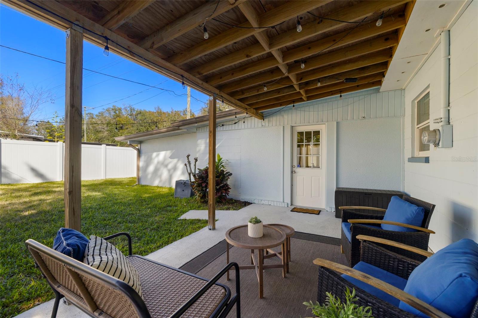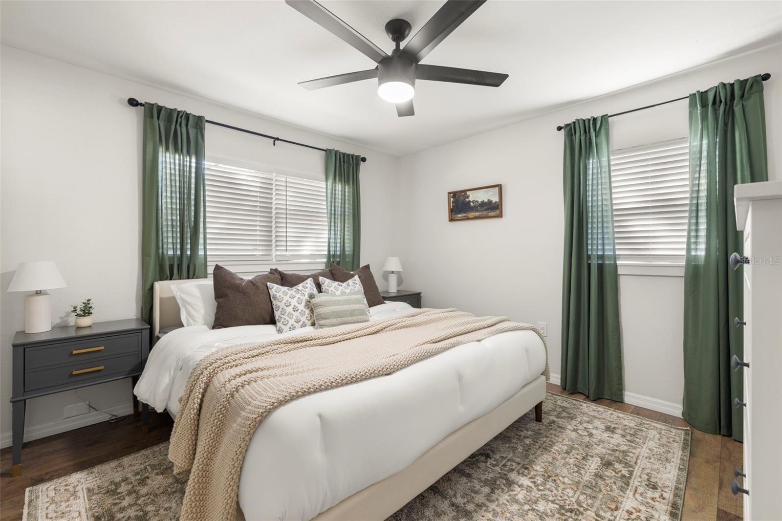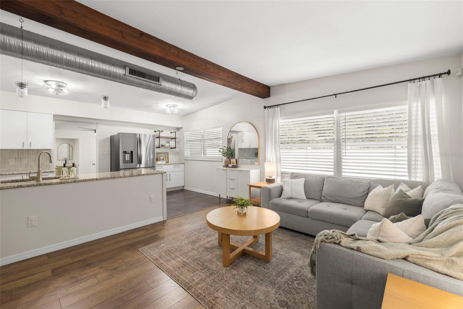 Welcome to 2018 E Broad Street, located in the heart of trendy Seminole Heights. From the moment you arrive, the home's charm draws you in. Known for its tree-lined streets, charming bungalows, and vibrant local culture, Seminole Heights has become one of Tampa's most desirable neighborhoods--and this property perfectly captures its appeal. This renovated 3-bedroom, 2-bath BLOCK home offers 1,323 square feet of living space with an inviting open floor plan. The bright and airy kitchen and family area create the perfect gathering space, highlighted by a bold wood beam that adds character and warmth. The kitchen offers ample countertop space for cooking and entertaining, stunning slate flooring, and abundant natural light. Modern wide-plank flooring flows throughout the home. All three bedrooms are tucked to the left, creating a private retreat away from the main living areas. Recent upgrades include a new HVAC system, new hot water heater, fresh interior paint, newer dishwasher and refrigerator, a custom-made steel front door, all-new blinds throughout, and a 120 sq ft custom hurricane-protected shed. Additional highlights include a privacy fence, two covered patios, utility storage room, and a spacious backyard lit by bistro string lights--perfect for grilling and entertaining. There is plenty of room for RV or boat storage, and the home is conveniently located in a neighborhood with parks and a disc golf course along the Hillsborough River. Beyond the home, enjoy being at the center of one of Tampa's most dynamic communities. Walk to popular restaurants, breweries, parks, and shopping, or take a short drive to downtown Tampa, Armature Works, and Tampa International Airport. Outdoor enthusiasts will love being minutes from Rivercrest Park, offering scenic riverfront trails, and close to McDugald Park, featuring beach volleyball courts and baseball fields, among other parks with access to pickleball and tennis. Families and visitors alike will appreciate easy access to ZooTampa, Busch Gardens, Glazer Children's Museum, and the University of South Florida, while commuters will enjoy approximately a 10-minute drive to downtown Tampa and Ybor City, with Tampa International Airport just 15 minutes away.