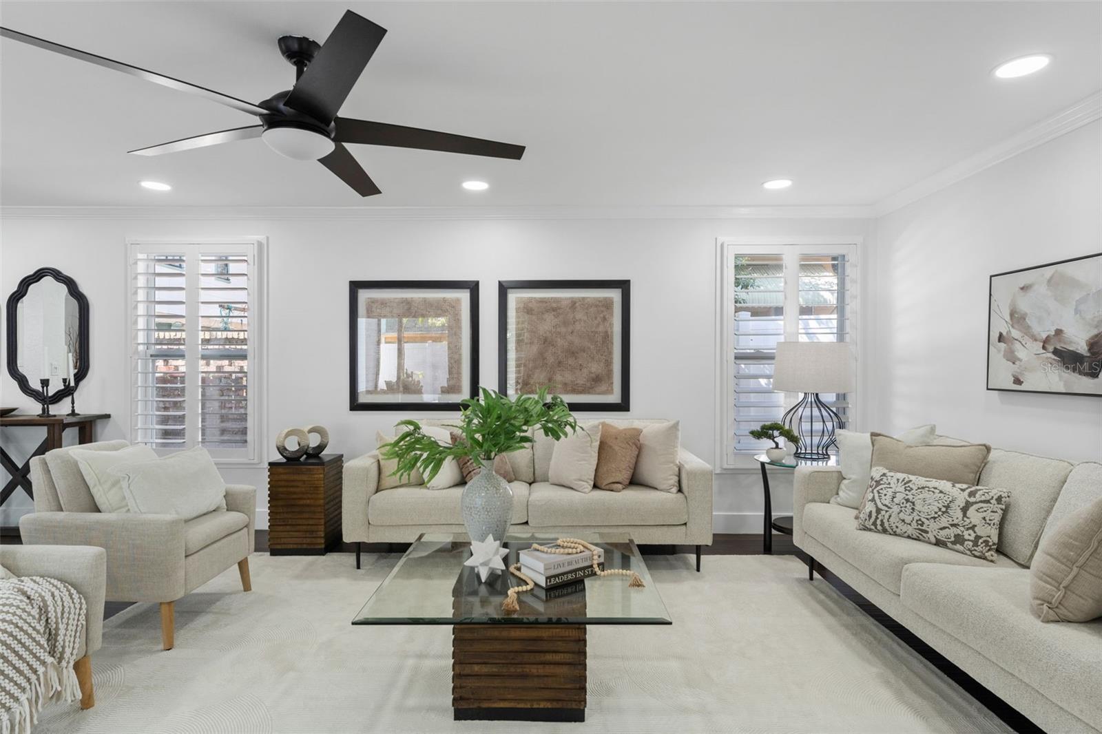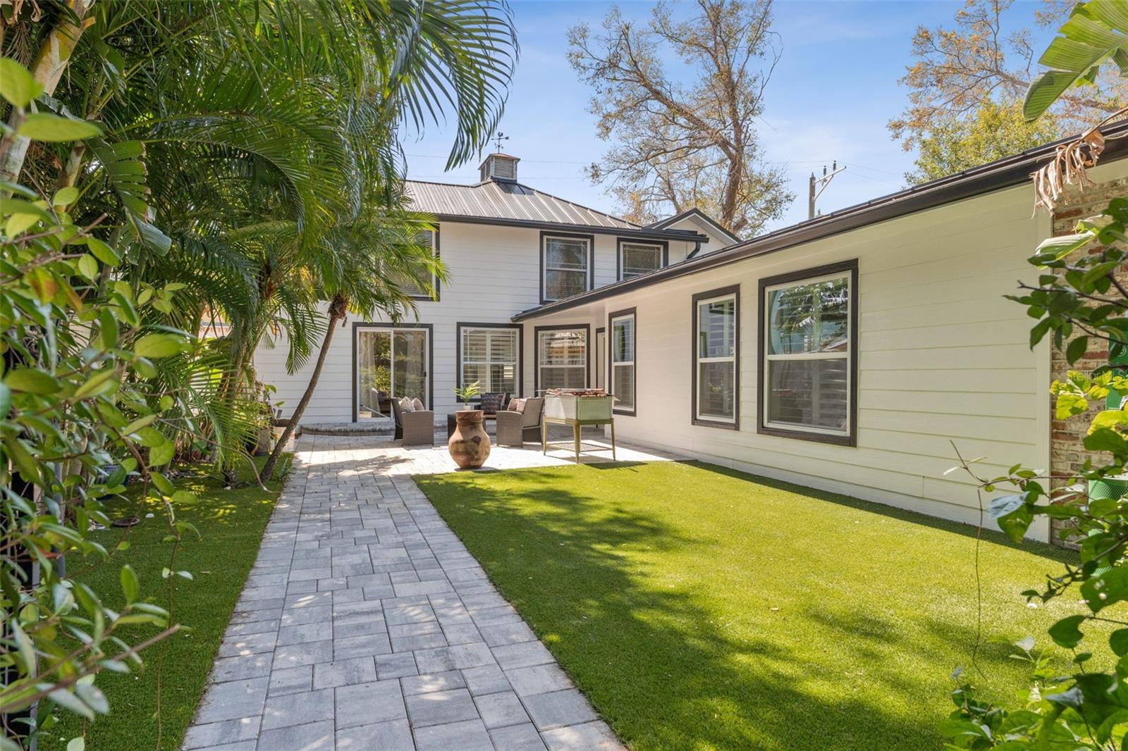 This 4-bedroom, 2.5-bath home located in Historic Old Northeast in a NON-FLOOD AND NON-EVAC ZONE (flood insurance is NOT required) offers a new roof, and truly low-maintenance living -- all while blending timeless character with thoughtful modern updates. A rare first-floor primary suite, an oversized driveway with off-street parking for four, and a spacious courtyard with room for a pool make this home truly stand out. Walking in the front door, you're greeted by an open-concept layout flooded with natural light. The open floor plan leads you into the inviting living room, which flows seamlessly into the light and bright kitchen, featuring a new refrigerator (2022) and stove (2025). Just off the kitchen, a fully renovated laundry room (2024) adds functionality, while the dining room sits adjacent. Off the dining room is the first-floor primary suite, complete with dual built-out closets (2023) and a fully remodeled spa-like bathroom (2024) featuring a walk-in shower and stunning finishes.Heading upstairs, you'll find three spacious guest bedrooms along with a loft-style seating area perfect as an additional living space, dedicated home office, or flexible bonus area. The upstairs bath (2024) has been beautifully updated, and new wood flooring flows throughout the home. Located just steps from Downtown St. Pete, this home offers the perfect balance of urban convenience and neighborhood charm, set on the wide, picturesque streets of 11th Ave N. Enjoy being just a 10-minute walk to downtown St. Pete and the scenic waterfront parks along Northshore.
