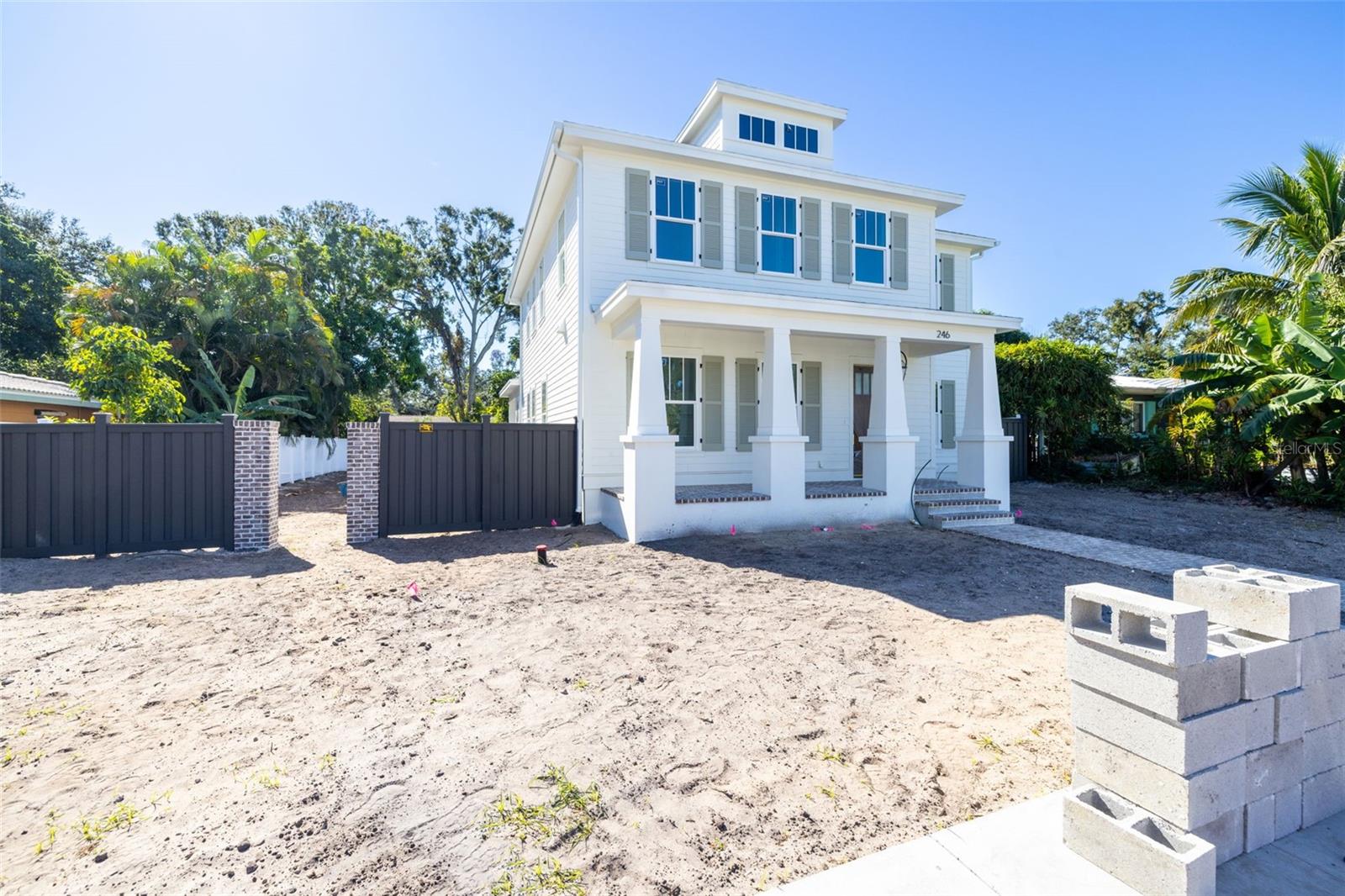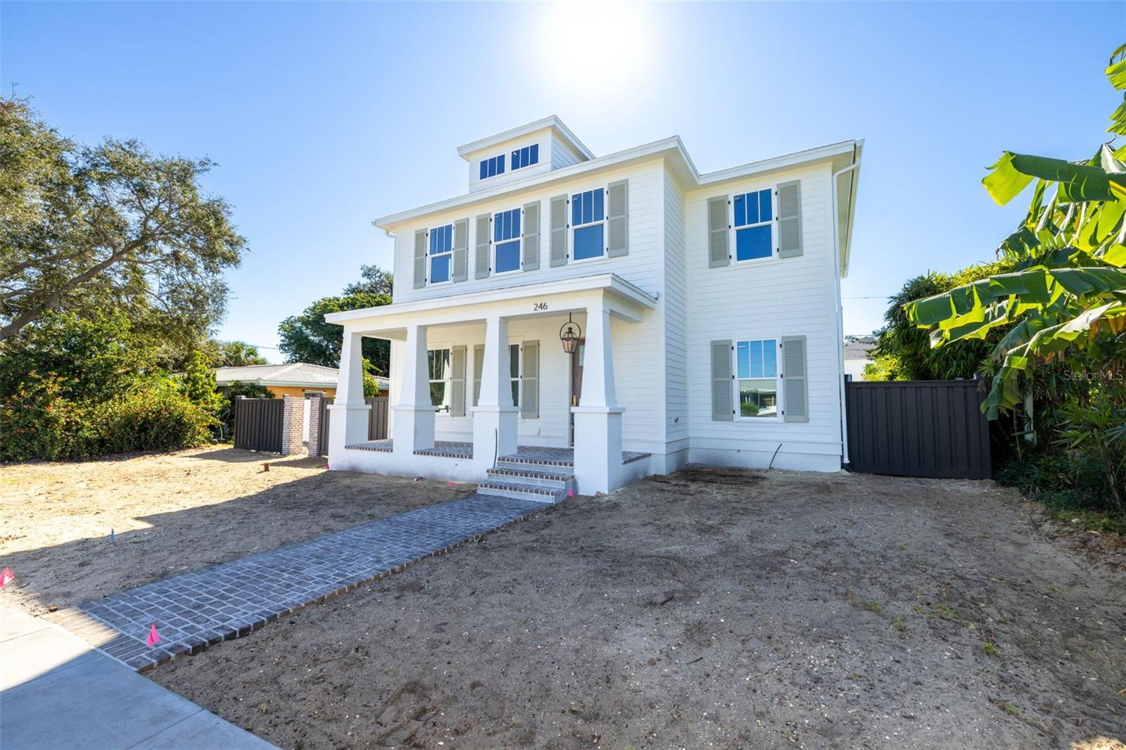 Under Construction. Est. Completion: December 2025. Don't miss the chance to make this your dream home with Canopy Builders - St. Petersburg's most TRUSTED name in luxury home construction. This beautifully crafted new construction home offers 6 bedrooms and 4.5 bathrooms across 3,589 sqft of total living space--including a 3,000 sqft main house and a 589 sqft 1 bed, 1 bath fully equipped Accessory Dwelling Unit (ADU) above a detached two-car garage. Located in the desirable Old Southeast neighborhood, this home is one of several new Canopy homes redefining the street with timeless design and modern livability. A welcoming front porch opens to a light-filled foyer with an elegant staircase and open sightlines. A major highlight is the FIRST-FLOOR PRIMARY SUITE, tucked privately behind the main living areas. It offers a large walk-in closet and a spa-like bathroom with dual vanities, frameless glass shower, and marble tile. To the right of the foyer, the gourmet kitchen showcases shaker-style maple cabinetry, upgraded quartz countertops, a wood range hood, GE Monogram appliances, and a farmhouse-style enameled cast iron sink. Soft-close drawers, 42" upper cabinets, and a luxe finish faucet reflect thoughtful craftsmanship. The kitchen connects to a dining area and a spacious living room with direct access to the covered back porch overlooking the private backyard. Just off the living room are a mudroom, laundry room with granite composite sink, and a powder bath with floating vanity--conveniently located near the rear entrance. Upstairs are four additional bedrooms, two full bathrooms, and a flexible bonus room. Bedroom 3 includes its own private en-suite bath, while Bedrooms 2 and 4 share a well-appointed hall bath. Bedroom 5 and the bonus room offer space for work, play, or guests. The 589 sq ft ADU provides private, detached living space with a bedroom, bathroom, full kitchen, great room, walk-in closet, and in-unit washer/dryer--ideal for guests, rental income, or multi-generational living. Every aspect of this home is thoughtfully planned, featuring a pre-designed finish package, Hardie Board siding, engineered hardwood flooring, impact-resistant windows, a tankless gas water heater, dual thermostats, 10' ceilings, 8' interior doors, and a gas sconce on the front porch. Exterior features include Sherwin-Williams paint, Owens Corning 30-year shingles, a paver walkway and porch, and Emtek entry hardware. Energy-efficient elements include a 15+ SEER HVAC system, open-cell attic insulation, and Low-E double-pane windows for year-round comfort. Backed by Canopy's comprehensive warranty -- this home offers peace of mind and lasting value. Located just steps from Lassing Park, minutes to Downtown St. Pete, and only 15 minutes to St. Pete Beach and 20 minutes to Tampa, this home delivers the perfect blend of character, craftsmanship, and convenience. Schedule your private tour today--your dream home awaits.