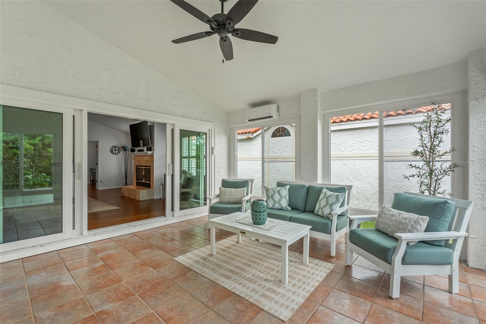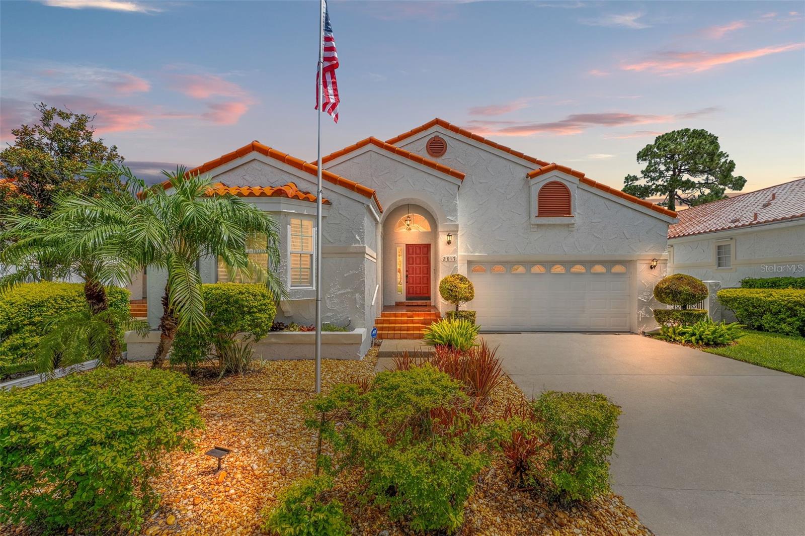 Elegant Mediterranean Sanctuary in Clearwater's Prestigious Vizcaya Community. Discover timeless elegance in this stunning 3-bedroom, 3-bathroom Spanish Mediterranean residence, offering 2,094 sq ft of impeccably designed living space within the sought-after, maintenance-free enclave of Vizcaya. This residence offers the ultimate blend of luxury, security, and convenience. Upon entry, soaring ceilings, rich dark wood floors, and an abundance of natural light create an immediate sense of grandeur. The open-concept design seamlessly connects the great room, kitchen, and dining areas -- perfect for effortless entertaining or intimate gatherings. The chef's kitchen is thoughtfully appointed with expansive cabinetry, granite countertops, a central island, and a wine cooler for sophisticated hosting. The serene primary suite serves as a private retreat, complete with a spa-inspired bath featuring dual vanities, a Jacuzzi-style soaking tub, separate walk-in shower, and an oversized walk-in closet. Two additional guest suites offer flexibility and privacy, one with its own en-suite bath and charming bay window, while the other is located adjacent to a third full bath and oversized storage closet with a built-in wall safe. No detail has been overlooked, with recent enhancements including: interior painting (2025), Pergo Outlast laminate flooring in bedrooms (2024), smart Champion garage door opener (2024), fireplace cap and crown (2023), fully enclosed sunroom with double-pane floor-to-ceiling windows and Senville mini-split HVAC (2023), exterior painting (2023), PGT WindGuard high-impact windows and sliders (2022), LG appliances (2019 & 2023), updated guest bathroom vanity (2019), rain gutters (2018), and a Sentricon termite protection system with annual inspections since 2017. Additional luxuries include a cozy wood-burning fireplace, custom plantation shutters, dedicated laundry room with washer and dryer, and extensive attic storage. Residents also enjoy proximity to Feather Sound Country Club, a private club offering championship golf, tennis courts, dining, and a vibrant calendar of year-round social events -- elevating the resort-style living experience. Ideally situated just 15 minutes from Tampa International Airport, 20 minutes to St. Pete-Clearwater Airport, and 25 minutes to the world-renowned sands of Clearwater Beach. Enjoy effortless access to downtown St. Petersburg, Tampa, and an array of upscale shopping, fine dining, and vibrant entertainment. This exceptional residence blends refined elegance with modern comfort -- a rare offering in one of Clearwater's most desirable communities. Schedule your private showing today and experience the Vizcaya lifestyle.