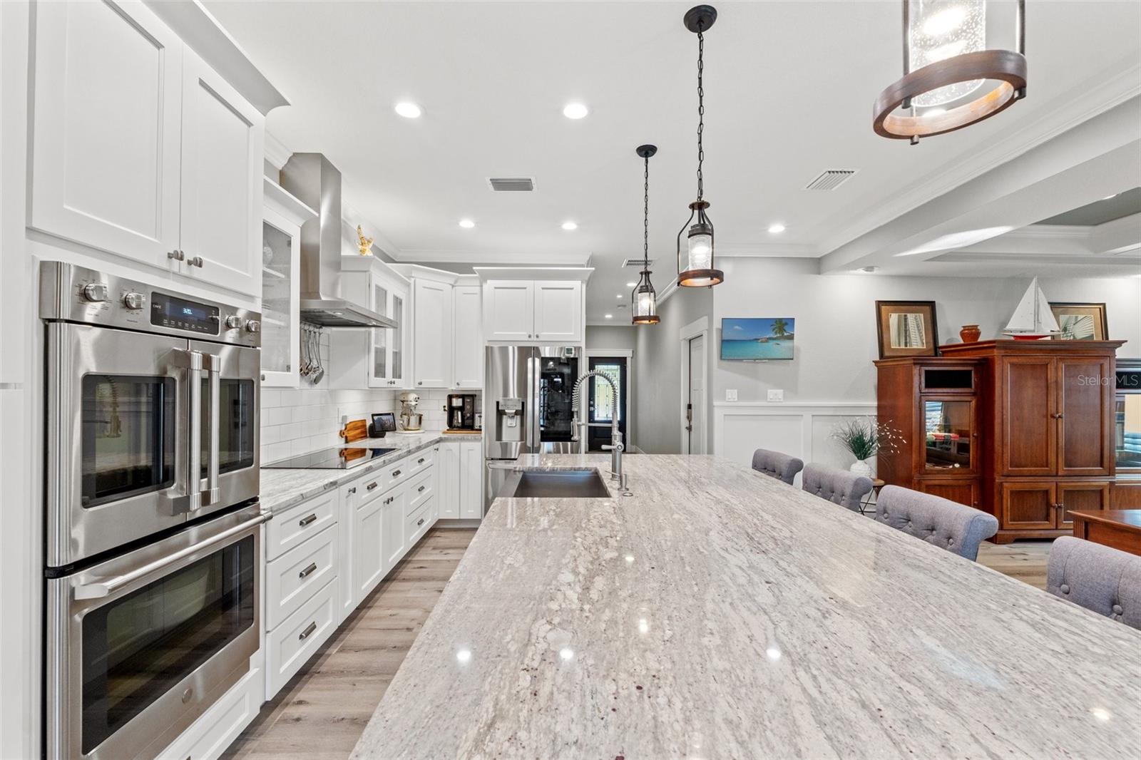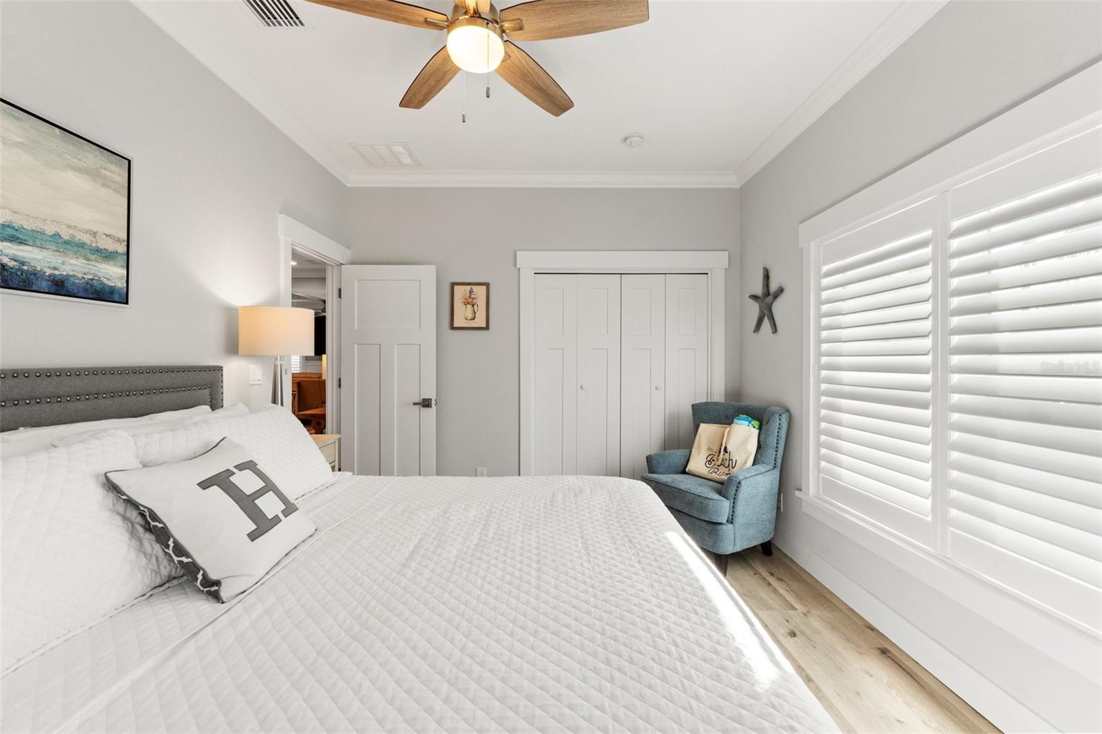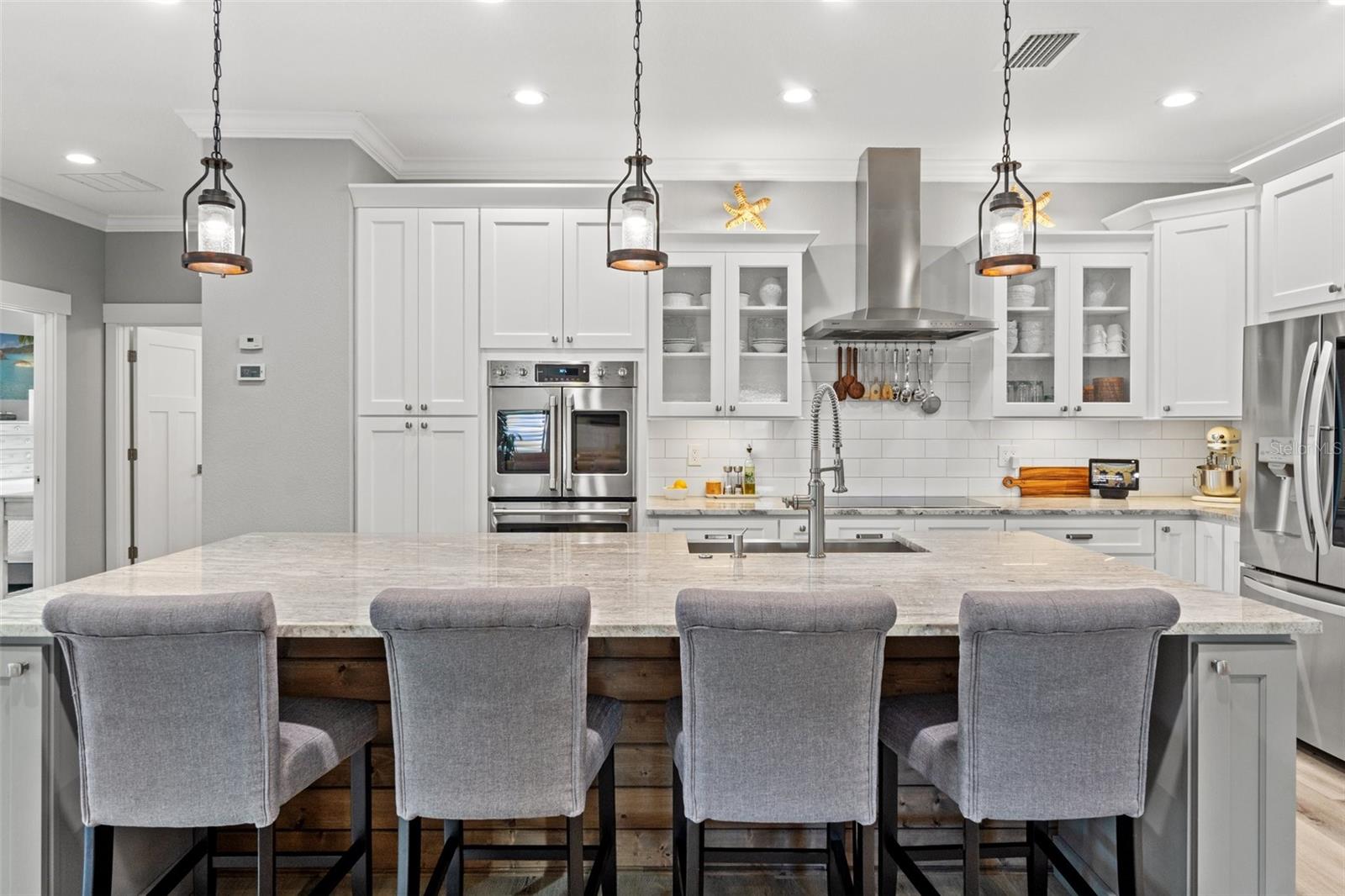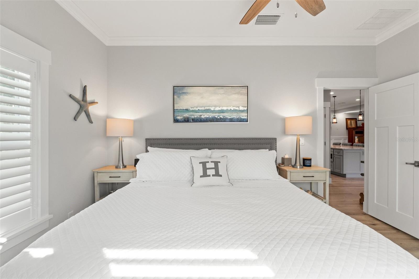 This 2020 ALL BLOCK construction home seamlessly combines timeless elegance with the relaxed Florida lifestyle to deliver an unmatched living experience. Boasting three bedrooms, two bathrooms, and 2,268 square feet of thoughtfully designed space, this home offers quiet living with reinforced insulated exterior walls for enhanced privacy and ample parking to accommodate your needs. Every detail of this residence was carefully crafted to ensure the perfect balance of comfort and functionality. Additionally, its superior construction has kept it entirely unaffected by recent hurricanes, highlighting its resilience and enduring quality. Step inside and marvel at the open-concept layout, where soaring 9-foot ceilings create a sense of spaciousness and sophistication. The exquisite chef's kitchen serves as the heart of the home, featuring a generous island with abundant counter space, solid wood cabinetry, luxurious granite countertops, a GE Cafe double oven, an oversized GE cooktop, and a Wolf range hood with a remote blower--perfectly suited for intimate dinners or grand entertaining. Adjacent to the kitchen, the family room and dining area flow seamlessly, offering a welcoming space for hosting gatherings. To the left of the kitchen, you'll find two well-appointed guest bedrooms and a full bathroom. Continuing through the kitchen and down the hallway, your dedicated laundry room awaits. The split floorplan ensures privacy, with the primary suite tucked away at the rear of the home. This serene retreat offers space for an additional seating area and leads to a grand primary bathroom with double walk-in closets, dual vanities, and a private water closet. Out back, the porch is the perfect spot to savor morning coffee or entertain friends in the evening. The backyard features plenty of space for a POOL (not included, see photos). With ample guest parking located at the rear of the home, hosting is always a breeze. The detailed craftmanship throughout the home is truly remarkable, with extensive custom woodwork including coffered and wood tray ceilings, board and batten accents, elegant wood plantation shutters, solid wood interior doors, and crown molding that elevate the home's aesthetic appeal. Constructed entirely of block with a 2023 metal roof and enhanced with closed cell foam insulation, this home provides an exceptionally quiet and energy-efficient environment. Featuring state-of-the-art energy and comfort solutions, including a top-of-the-line heat pump, a whole house ventilation and dehumidification system for comfort in Florida's heat and humidity, impact resistant windows, and an expansive solar system. Additionally, a whole-home portable generator with a dedicated hookup offers peace of mind during power outages. Outdoor enthusiasts will appreciate the dedicated long RV/boat parking area, complete with an electric hookup, making it effortless to embrace an adventurous lifestyle. Situated in the highly sought-after North East Park neighborhood, this home offers unparalleled convenience, with easy access to Downtown St. Pete, and within walking distance of Whole Foods, Publix, fitness centers, and premier shopping destinations. Located 10 minutes from Downtown St. Petersburg, 15 minutes from award-winning beaches, and only a 20-minute drive from Tampa. Don't miss out on this opportunity to secure this breathtaking home for yourself!