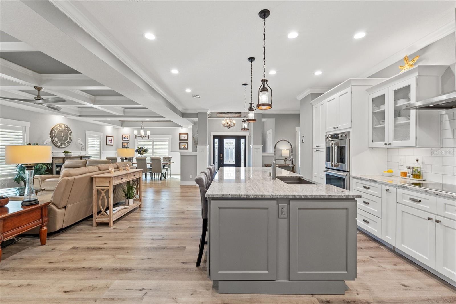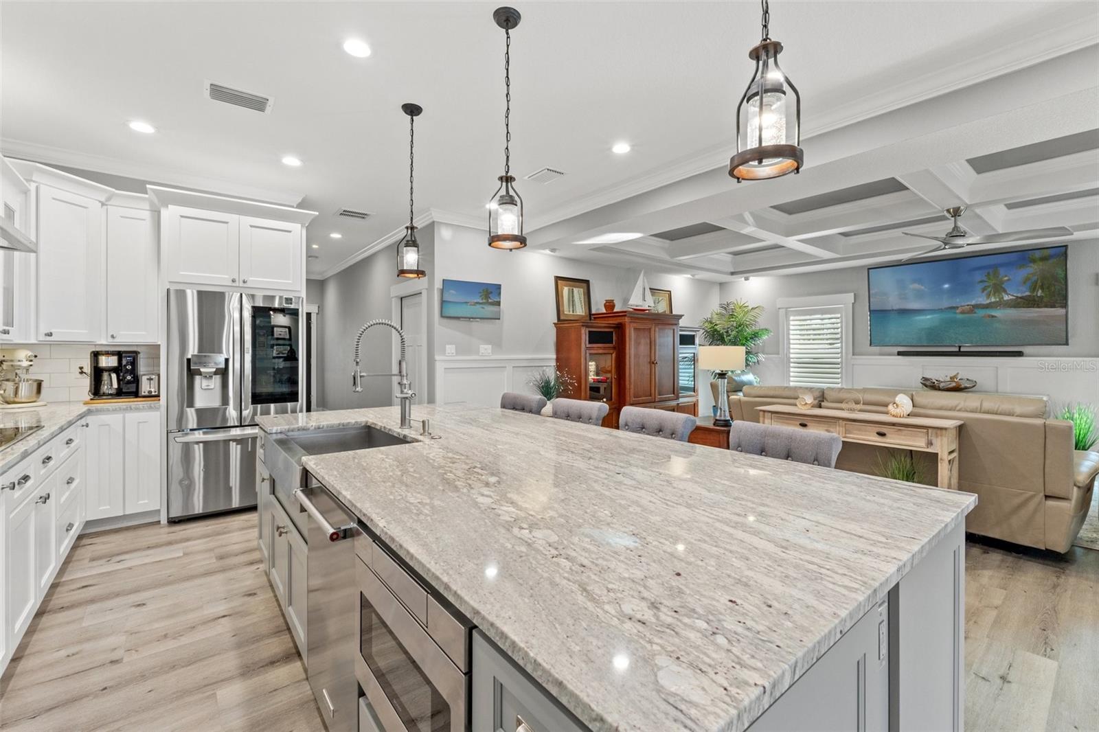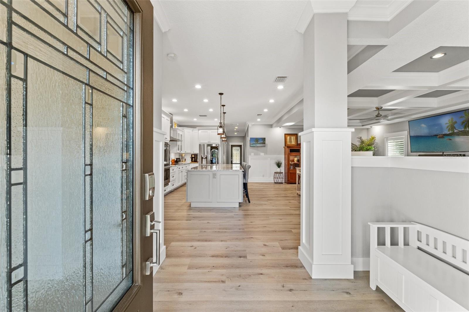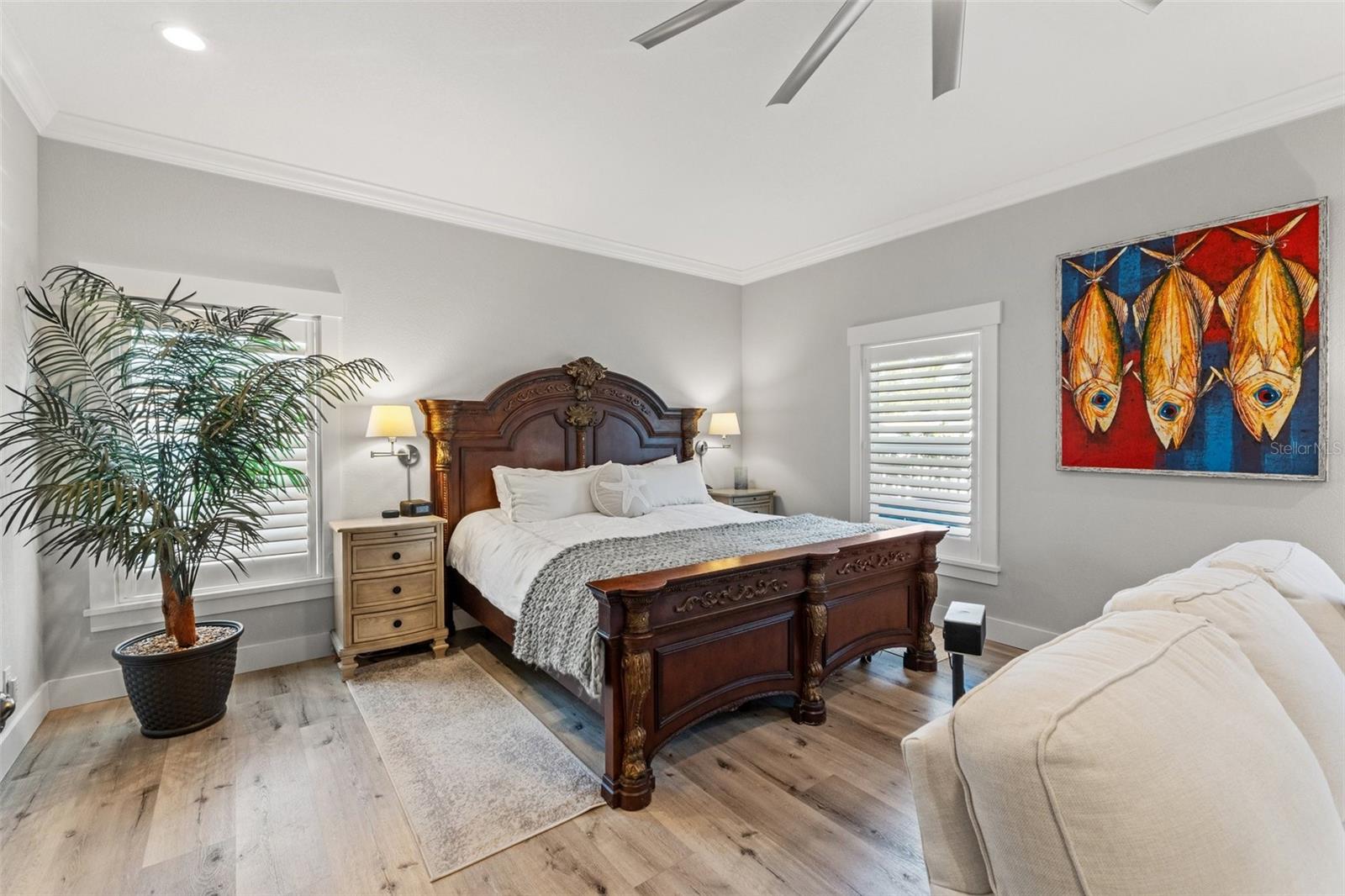 This 2020 ALL BLOCK construction home seamlessly combines timeless elegance with the relaxed Florida lifestyle to deliver an unmatched living experience. Boasting three bedrooms, two bathrooms, and 2,268 square feet of thoughtfully designed space, this home offers quiet living with reinforced insulated exterior walls for enhanced privacy and ample parking to accommodate your needs. Every detail of this residence was carefully crafted to ensure the perfect balance of comfort and functionality. Additionally, its superior construction has kept it entirely unaffected by recent hurricanes, highlighting its resilience and enduring quality. Step inside and marvel at the open-concept layout, where soaring 9-foot ceilings create a sense of spaciousness and sophistication. The exquisite chef's kitchen serves as the heart of the home, featuring a generous island with abundant counter space, solid wood cabinetry, luxurious granite countertops, a GE Cafe double oven, an oversized GE cooktop, and a Wolf range hood with a remote blower--perfectly suited for intimate dinners or grand entertaining. Adjacent to the kitchen, the family room and dining area flow seamlessly, offering a welcoming space for hosting gatherings. To the left of the kitchen, you'll find two well-appointed guest bedrooms and a full bathroom. Continuing through the kitchen and down the hallway, your dedicated laundry room awaits. The split floorplan ensures privacy, with the primary suite tucked away at the rear of the home. This serene retreat offers space for an additional seating area and leads to a grand primary bathroom with double walk-in closets, dual vanities, and a private water closet. Out back, the porch is the perfect spot to savor morning coffee or entertain friends in the evening. The backyard features plenty of space for a POOL (not included, see photos). With ample guest parking located at the rear of the home, hosting is always a breeze. The detailed craftmanship throughout the home is truly remarkable, with extensive custom woodwork including coffered and wood tray ceilings, board and batten accents, elegant wood plantation shutters, solid wood interior doors, and crown molding that elevate the home's aesthetic appeal. Constructed entirely of block with a 2023 metal roof and enhanced with closed cell foam insulation, this home provides an exceptionally quiet and energy-efficient environment. Featuring state-of-the-art energy and comfort solutions, including a top-of-the-line heat pump, a whole house ventilation and dehumidification system for comfort in Florida's heat and humidity, impact resistant windows, and an expansive solar system. Additionally, a whole-home portable generator with a dedicated hookup offers peace of mind during power outages. Outdoor enthusiasts will appreciate the dedicated long RV/boat parking area, complete with an electric hookup, making it effortless to embrace an adventurous lifestyle. Situated in the highly sought-after North East Park neighborhood, this home offers unparalleled convenience, with easy access to Downtown St. Pete, and within walking distance of Whole Foods, Publix, fitness centers, and premier shopping destinations. Located 10 minutes from Downtown St. Petersburg, 15 minutes from award-winning beaches, and only a 20-minute drive from Tampa. Don't miss out on this opportunity to secure this breathtaking home for yourself!