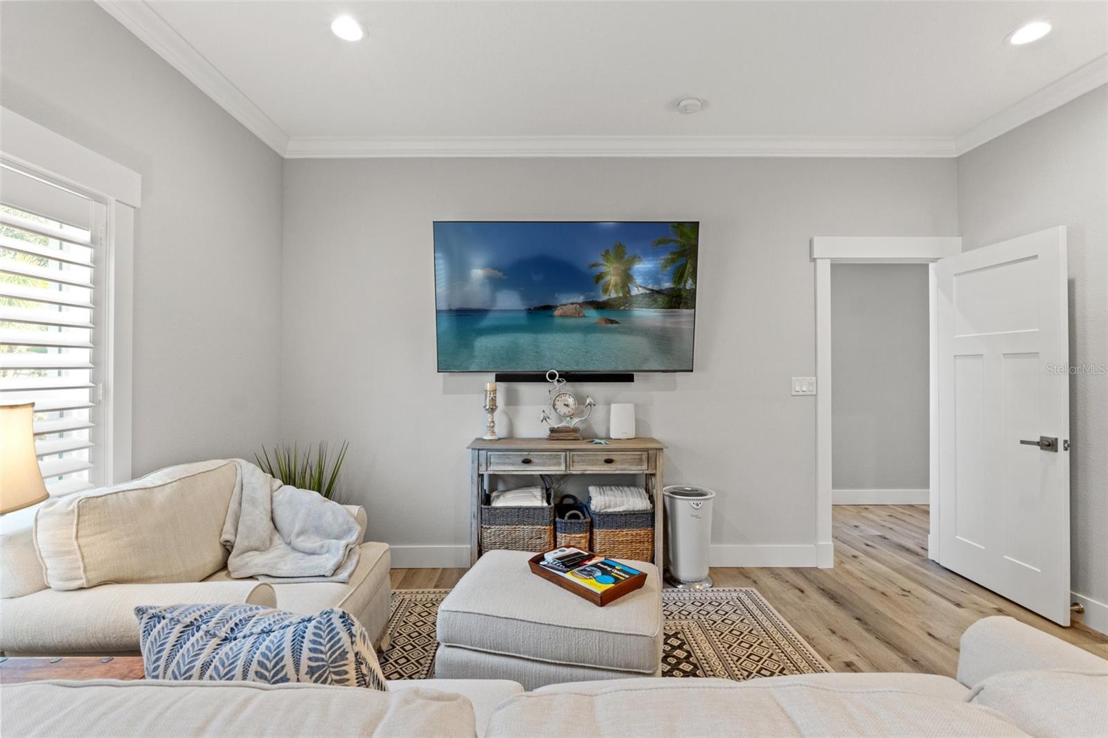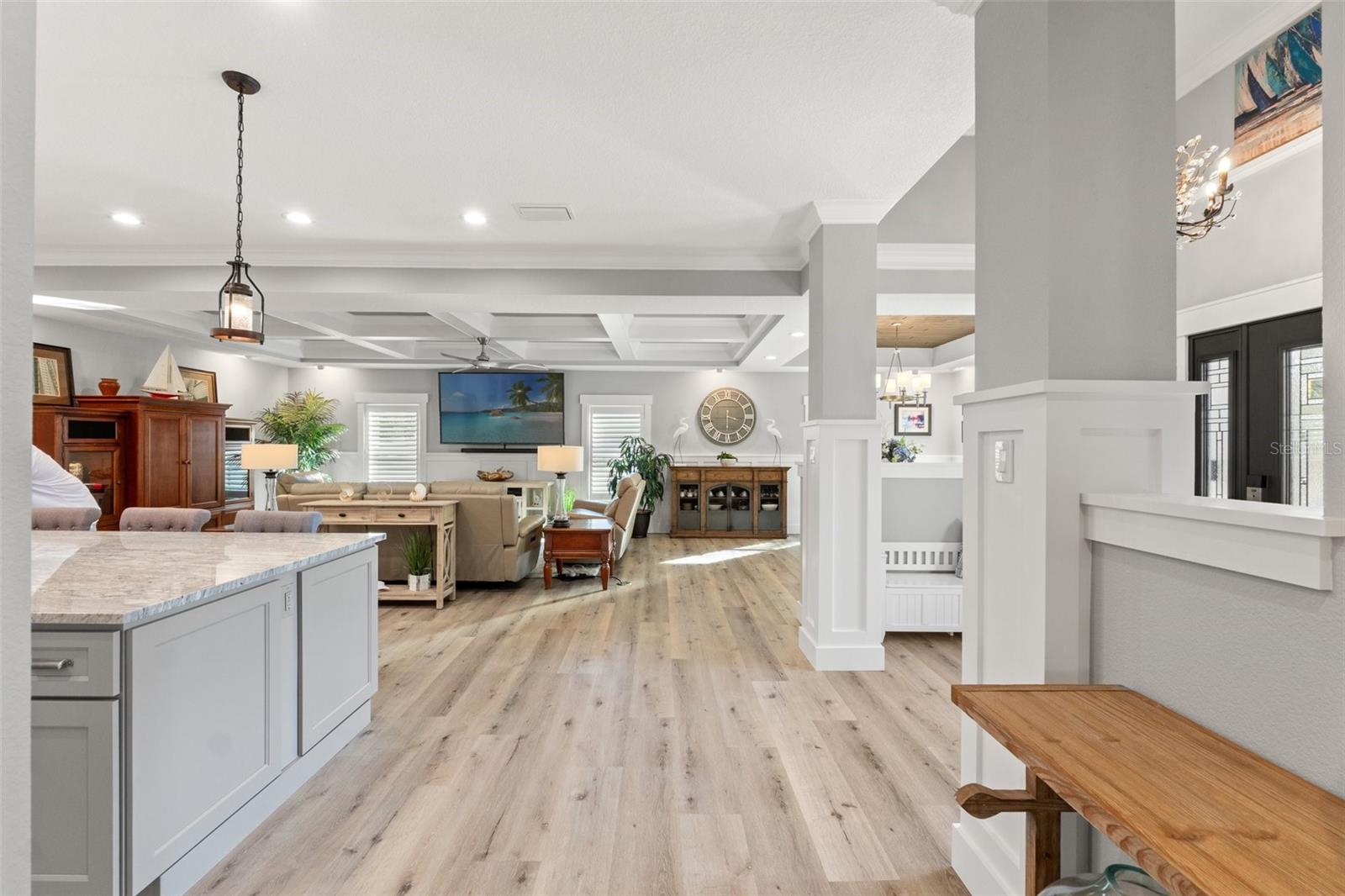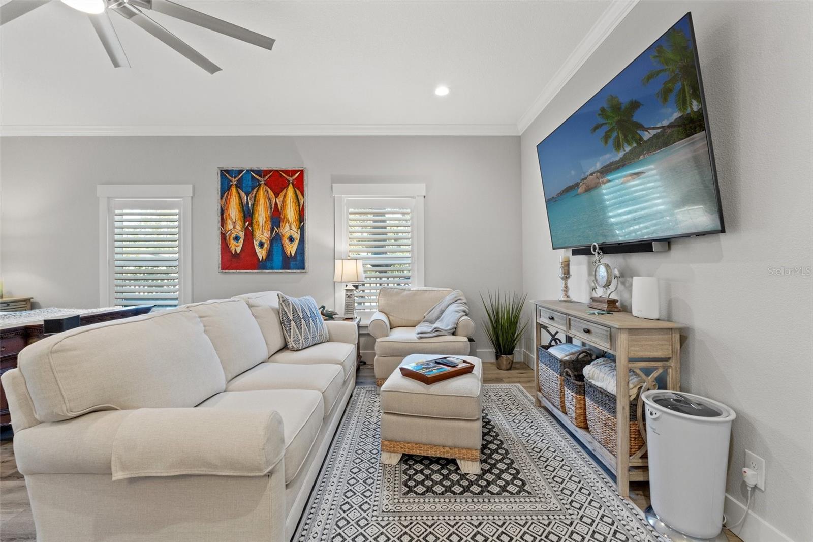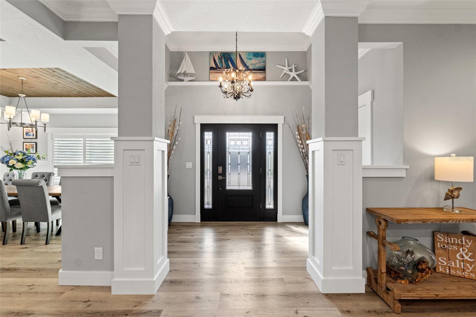 This 2020 ALL BLOCK construction home seamlessly combines timeless elegance with the relaxed Florida lifestyle to deliver an unmatched living experience. Boasting three bedrooms, two bathrooms, and 2,268 square feet of thoughtfully designed space, this home offers quiet living with reinforced insulated exterior walls for enhanced privacy and ample parking to accommodate your needs. Every detail of this residence was carefully crafted to ensure the perfect balance of comfort and functionality. Additionally, its superior construction has kept it entirely unaffected by recent hurricanes, highlighting its resilience and enduring quality. Step inside and marvel at the open-concept layout, where soaring 9-foot ceilings create a sense of spaciousness and sophistication. The exquisite chef's kitchen serves as the heart of the home, featuring a generous island with abundant counter space, solid wood cabinetry, luxurious granite countertops, a GE Cafe double oven, an oversized GE cooktop, and a Wolf range hood with a remote blower--perfectly suited for intimate dinners or grand entertaining. Adjacent to the kitchen, the family room and dining area flow seamlessly, offering a welcoming space for hosting gatherings. To the left of the kitchen, you'll find two well-appointed guest bedrooms and a full bathroom. Continuing through the kitchen and down the hallway, your dedicated laundry room awaits. The split floorplan ensures privacy, with the primary suite tucked away at the rear of the home. This serene retreat offers space for an additional seating area and leads to a grand primary bathroom with double walk-in closets, dual vanities, and a private water closet. Out back, the porch is the perfect spot to savor morning coffee or entertain friends in the evening. The backyard features plenty of space for a POOL (not included, see photos). With ample guest parking located at the rear of the home, hosting is always a breeze. The detailed craftmanship throughout the home is truly remarkable, with extensive custom woodwork including coffered and wood tray ceilings, board and batten accents, elegant wood plantation shutters, solid wood interior doors, and crown molding that elevate the home's aesthetic appeal. Constructed entirely of block with a 2023 metal roof and enhanced with closed cell foam insulation, this home provides an exceptionally quiet and energy-efficient environment. Featuring state-of-the-art energy and comfort solutions, including a top-of-the-line heat pump, a whole house ventilation and dehumidification system for comfort in Florida's heat and humidity, impact resistant windows, and an expansive solar system. Additionally, a whole-home portable generator with a dedicated hookup offers peace of mind during power outages. Outdoor enthusiasts will appreciate the dedicated long RV/boat parking area, complete with an electric hookup, making it effortless to embrace an adventurous lifestyle. Situated in the highly sought-after North East Park neighborhood, this home offers unparalleled convenience, with easy access to Downtown St. Pete, and within walking distance of Whole Foods, Publix, fitness centers, and premier shopping destinations. Located 10 minutes from Downtown St. Petersburg, 15 minutes from award-winning beaches, and only a 20-minute drive from Tampa. Don't miss out on this opportunity to secure this breathtaking home for yourself!