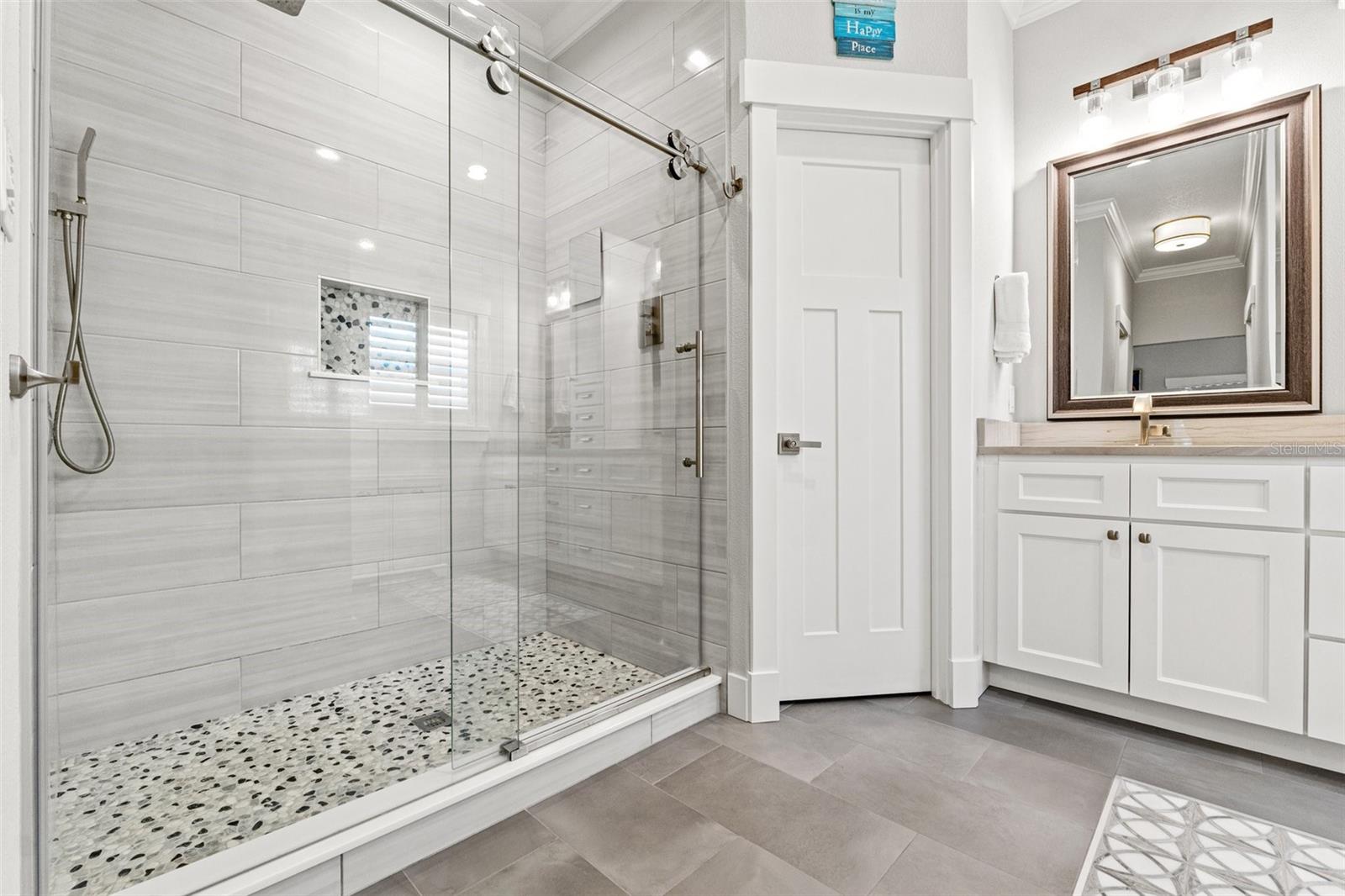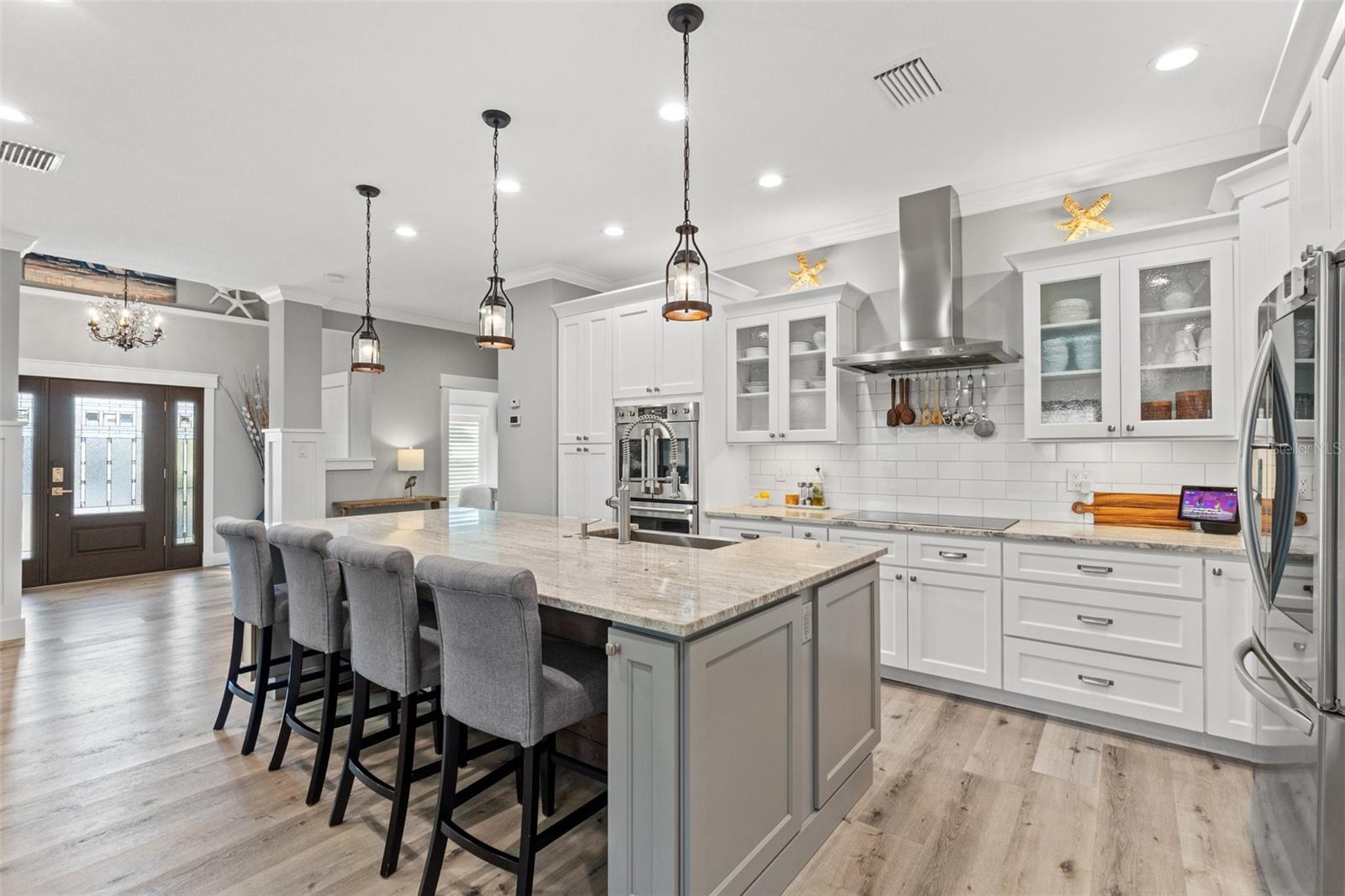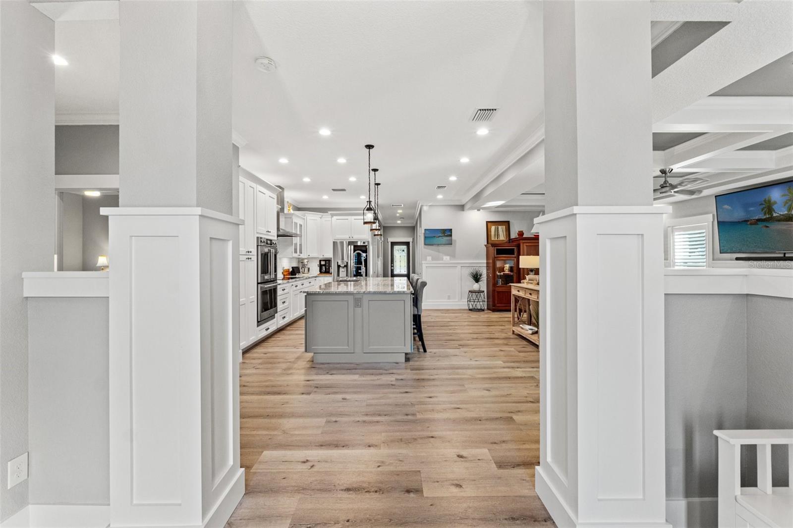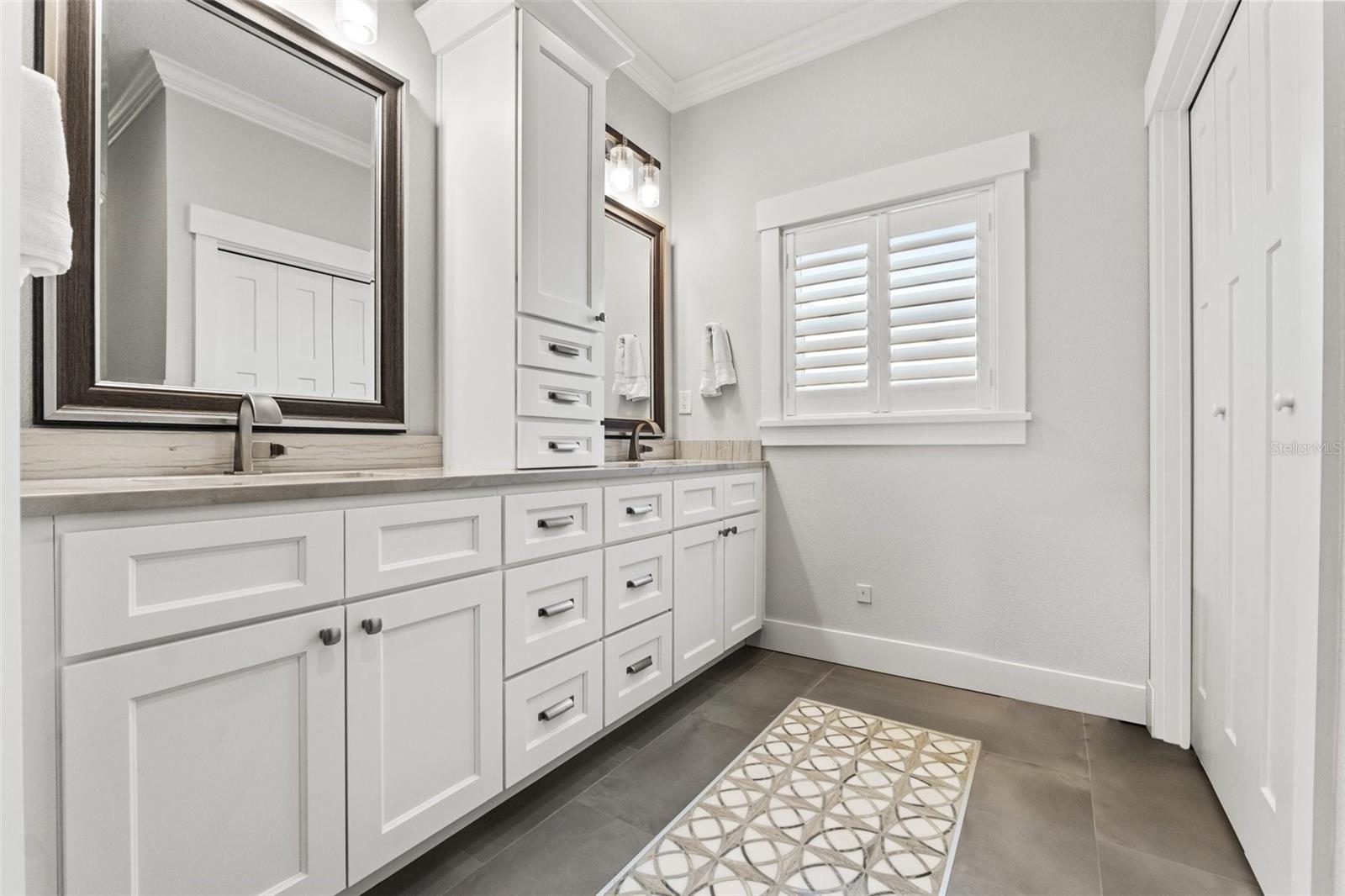 This 2020 ALL BLOCK construction home seamlessly combines timeless elegance with the relaxed Florida lifestyle to deliver an unmatched living experience. Boasting three bedrooms, two bathrooms, and 2,268 square feet of thoughtfully designed space, this home offers quiet living with reinforced insulated exterior walls for enhanced privacy and ample parking to accommodate your needs. Every detail of this residence was carefully crafted to ensure the perfect balance of comfort and functionality. Additionally, its superior construction has kept it entirely unaffected by recent hurricanes, highlighting its resilience and enduring quality. Step inside and marvel at the open-concept layout, where soaring 9-foot ceilings create a sense of spaciousness and sophistication. The exquisite chef's kitchen serves as the heart of the home, featuring a generous island with abundant counter space, solid wood cabinetry, luxurious granite countertops, a GE Cafe double oven, an oversized GE cooktop, and a Wolf range hood with a remote blower--perfectly suited for intimate dinners or grand entertaining. Adjacent to the kitchen, the family room and dining area flow seamlessly, offering a welcoming space for hosting gatherings. To the left of the kitchen, you'll find two well-appointed guest bedrooms and a full bathroom. Continuing through the kitchen and down the hallway, your dedicated laundry room awaits. The split floorplan ensures privacy, with the primary suite tucked away at the rear of the home. This serene retreat offers space for an additional seating area and leads to a grand primary bathroom with double walk-in closets, dual vanities, and a private water closet. Out back, the porch is the perfect spot to savor morning coffee or entertain friends in the evening. The backyard features plenty of space for a POOL (not included, see photos). With ample guest parking located at the rear of the home, hosting is always a breeze. The detailed craftmanship throughout the home is truly remarkable, with extensive custom woodwork including coffered and wood tray ceilings, board and batten accents, elegant wood plantation shutters, solid wood interior doors, and crown molding that elevate the home's aesthetic appeal. Constructed entirely of block with a 2023 metal roof and enhanced with closed cell foam insulation, this home provides an exceptionally quiet and energy-efficient environment. Featuring state-of-the-art energy and comfort solutions, including a top-of-the-line heat pump, a whole house ventilation and dehumidification system for comfort in Florida's heat and humidity, impact resistant windows, and an expansive solar system. Additionally, a whole-home portable generator with a dedicated hookup offers peace of mind during power outages. Outdoor enthusiasts will appreciate the dedicated long RV/boat parking area, complete with an electric hookup, making it effortless to embrace an adventurous lifestyle. Situated in the highly sought-after North East Park neighborhood, this home offers unparalleled convenience, with easy access to Downtown St. Pete, and within walking distance of Whole Foods, Publix, fitness centers, and premier shopping destinations. Located 10 minutes from Downtown St. Petersburg, 15 minutes from award-winning beaches, and only a 20-minute drive from Tampa. Don't miss out on this opportunity to secure this breathtaking home for yourself!