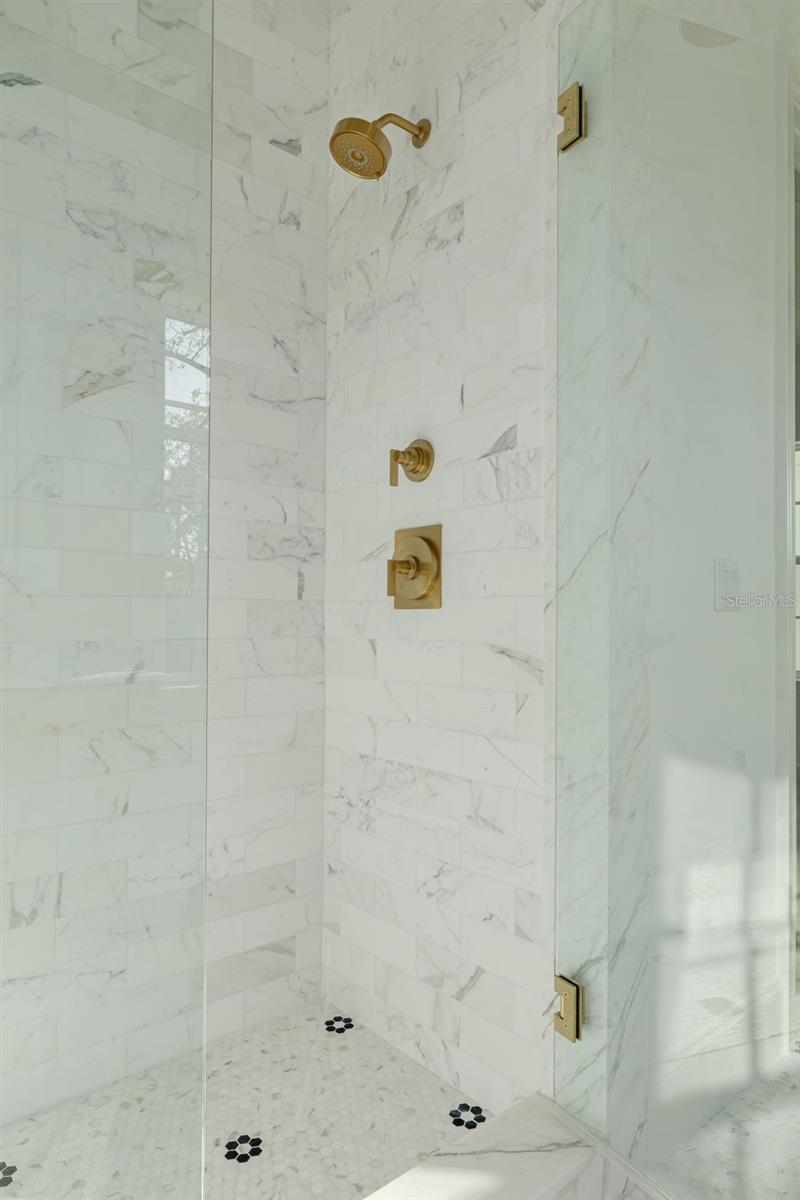 This is a MOVE-IN READY CANOPY SIGNATURE HOME in collaboration with LAUREN LEITNER DESIGN. Would you love to live just steps from BEACH DRIVE in St. Petersburg's coveted Historic Old Northeast in a custom designed Canopy Home? Here's your chance to make that dream a reality with Canopy Builders - St. Petersburg's most trusted name in luxury home construction. This new build sits on a desirable 89 x 110 sq ft corner lot and offers 4 Bedrooms (FIRST-FLOOR PRIMARY SUITE) + Study + Loft, 4 Baths, an oversized 2-car garage, pool and spa, plus an Accessory Dwelling Unit (ADU) with 1 bedroom and 1 bath. The main residence boasts 3,985 sq ft of living space, with the ADU adding 589 sq ft for a total of 4,574 sq ft under air. The ADU includes a full kitchen, laundry, and walk-in closet--ideal for guests, extended family, or rental income. Surrounded by brick streets and mature oak trees, this home blends modern luxury with timeless character, just a 10-minute walk to downtown St. Pete and the waterfront parks. From the welcoming front porch, you enter a foyer with tongue-and-groove paneling and designer lighting, while the formal dining room showcases grasscloth wallpaper, wainscoting, and a statement chandelier. The great room boasts a fireplace and coffered ceilings, flowing seamlessly into the kitchen, designed as both a chef's dream and a gathering space. The kitchen features a La Cornue range, paneled Sub-Zero refrigerator, Bosch dishwasher, and inset custom cabinetry, anchored by a white oak island with Calcutta marble countertops, tongue-and-groove ceiling, and a custom reeded range hood. A breakfast nook with a gold pendant sits just beyond, while the butler's pantry impresses with a paneled Avalon wine cooler, deep green cabinetry, brass shelving, marble counters, and gold hardware. The main level also includes a mudroom with dark cabinetry and brick herringbone flooring, a powder room with wallpaper and a soapstone vanity, and a laundry with custom cabinetry, marble checkerboard floors, and Calcutta counters. The primary suite offers wood-beamed ceilings and a spa-like bath with gold accents, fluted vanities, and Calcutta marble. Upstairs, a loft opens to three bedrooms, each with its own en suite, including designs with navy handcrafted tile and dark wood vanity, gingham tile with marble accents, and a white reeded vanity with silver hardware. The upstairs laundry includes deep green tile, Carrera marble counters, and soft white cabinetry. Canopy not only designed the interior but also customized all exterior finishes. Out back, enjoy a custom pool and spa, outdoor kitchen with grill and brick hood, and lush surroundings. The detached ADU includes quartz counters, white cabinetry, and subway tile backsplash. Planned features include Hardie Board siding, a tankless gas water heater, impact-resistant windows, and engineered hardwood floors throughout. Dual digital thermostats allow independent climate control. Additional luxuries include 10' ceilings on the first floor, 9' ceilings on the second, 8' interior doors, and Canopy's signature gas sconces on the porch. This home is walking distance to waterfront North Shore Park, biking distance to downtown, and just a 20-minute drive to St. Pete Beach or Tampa. Contact us to learn more about the custom finishes that make this home truly one of a kind.